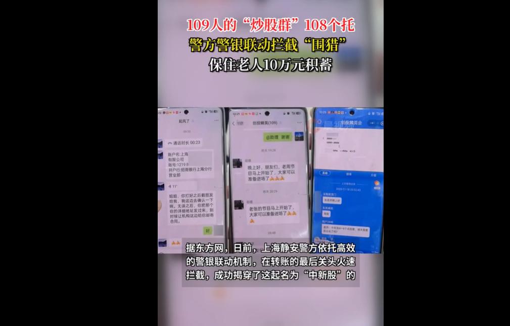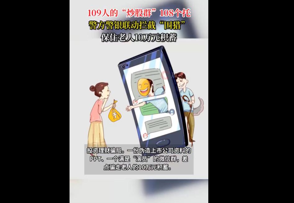 你还敢随便加群吗? 上海静安的陆阿姨被网友拉进一个叫 “创投精英汇” 的微信群,群里 108 人全是托儿,就她一个真投资者。 对方拿伪造的公司资料说能 “中新股”、赚 20% 以上收益,骗她转 10 万元。 银行发现不对劲后赶紧联系警方,最后成功拦住转账,保住了老人的积蓄,警方提醒年底诈骗多,大家要当心。 108 个托儿围着 1 个老人骗,这骗局也太狠了! 骗子就是摸准了有些老人想轻松赚钱的心思,用假资料、假赚钱消息营造假象,一步步让老人放下戒心。 还好银行和警察反应快,联手拦住了转账,没让老人的养老钱打水漂。 这事儿也提醒大家,年底骗子要 “冲业绩”,千万别信陌生人说的 “高收益、稳赚不赔”。 不管是自己还是家里老人,投资理财都得找正规机构,陌生群里的 “赚钱机会” 全是坑。 平时多听听反诈宣传,遇到要大额转账的事儿,先跟家人或警察问问,别脑子一热就把钱转出去了!