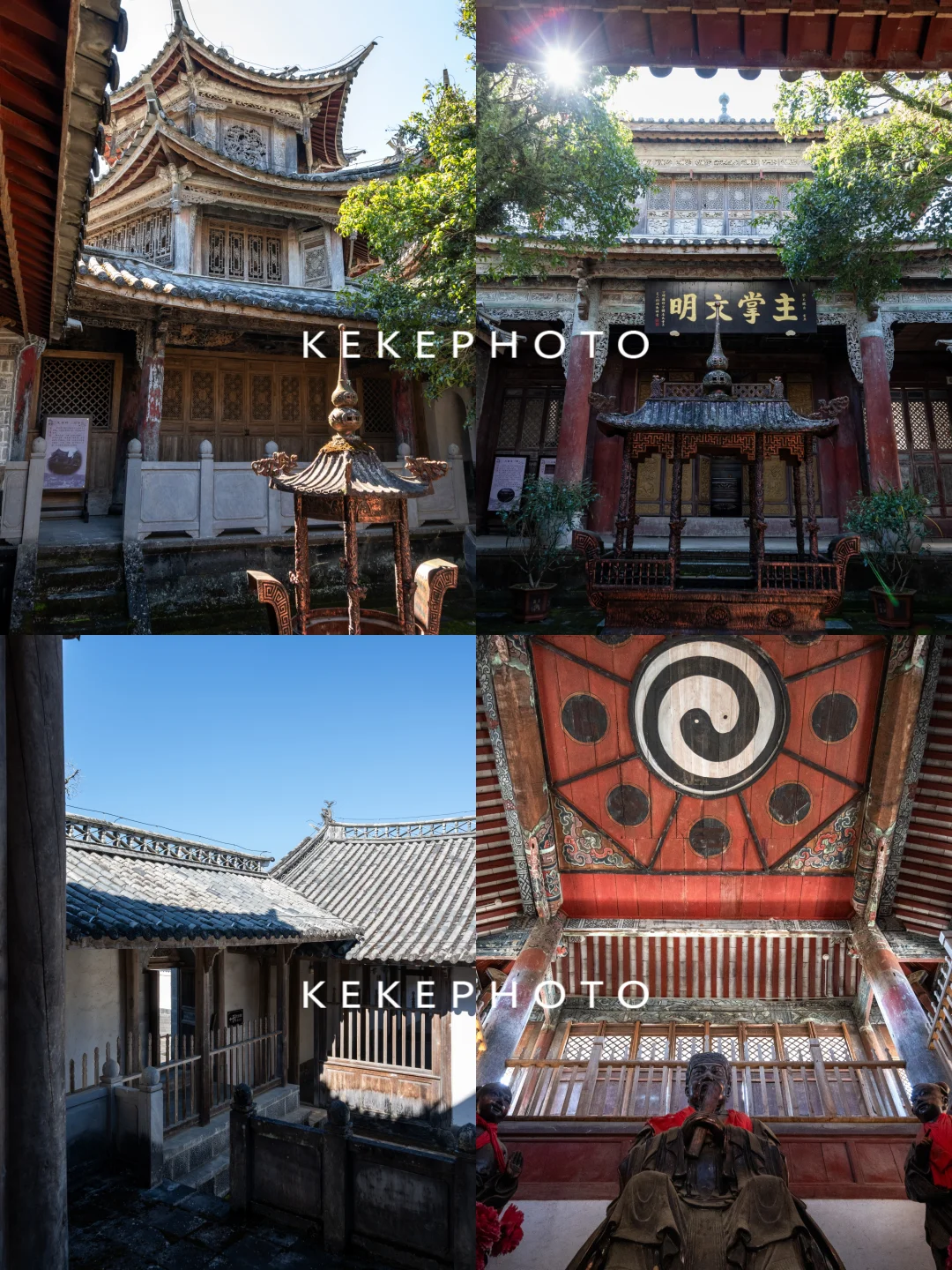 [自拍R][自拍R]文昌殿左右以魁星阁和至圣楼对称排列。整个古建筑群由18个单体建筑围合成的15个庭院组成。中轴线及其东侧的建筑按文庙建筑形制布局,中轴线以西按道教建筑形制布局,较好地保存了当地当时的古建特征、技法等,是研究本土明清木构建筑珍贵的实物例证,对研究儒道文化在边疆地区的传播、发展具有重yao价值。