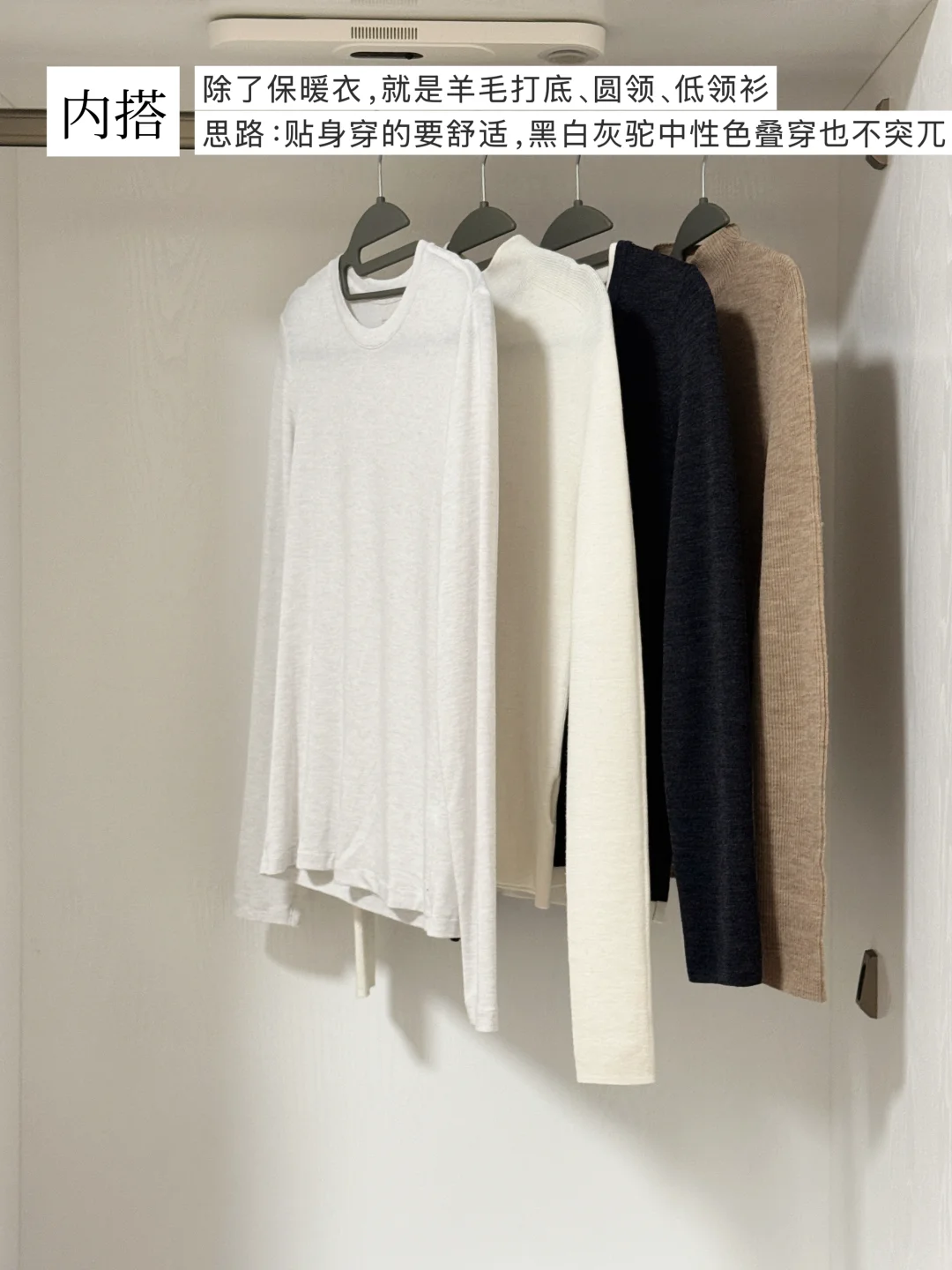 除了保暖衣,就是羊毛打底、圆领、低领衫
