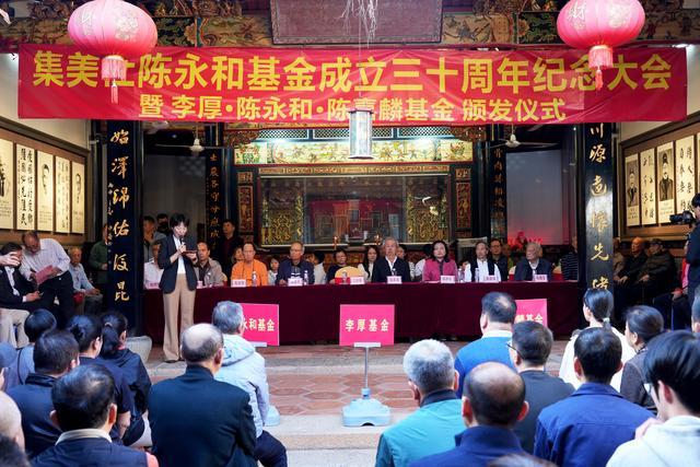 11月29日下午,厦门市集美社陈永和基金成立三十周年庆典在集美祠后路五柱祖厅举办。陈文确、陈六使家族后裔代表齐聚,颁发基金会福利金,并捐建厦门市集美第二小学图书馆,共话先辈精神传承与家乡情怀。