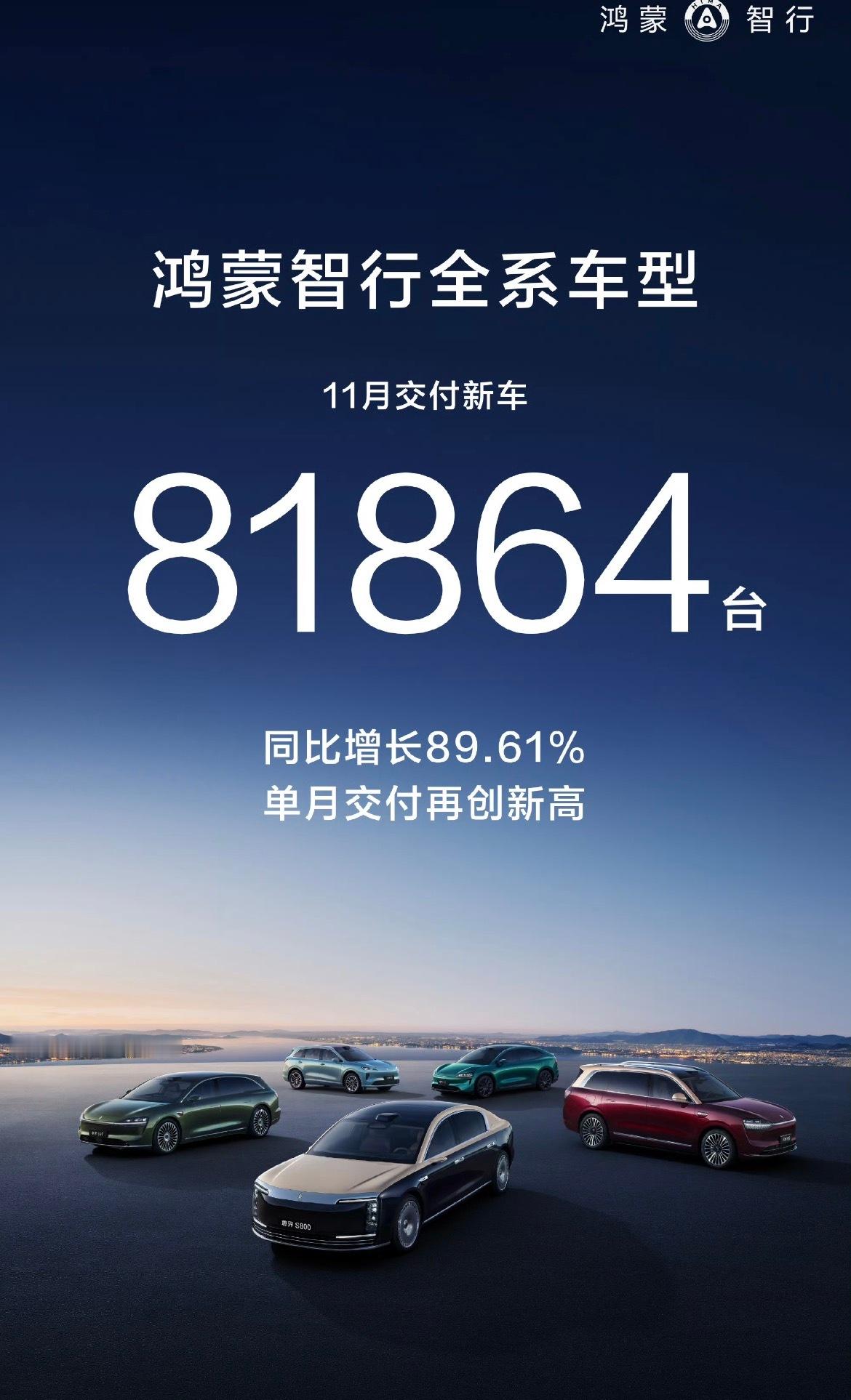 12月各车企陆续公布11月销量成绩单~鸿蒙智行11月全系交付新车81,864台