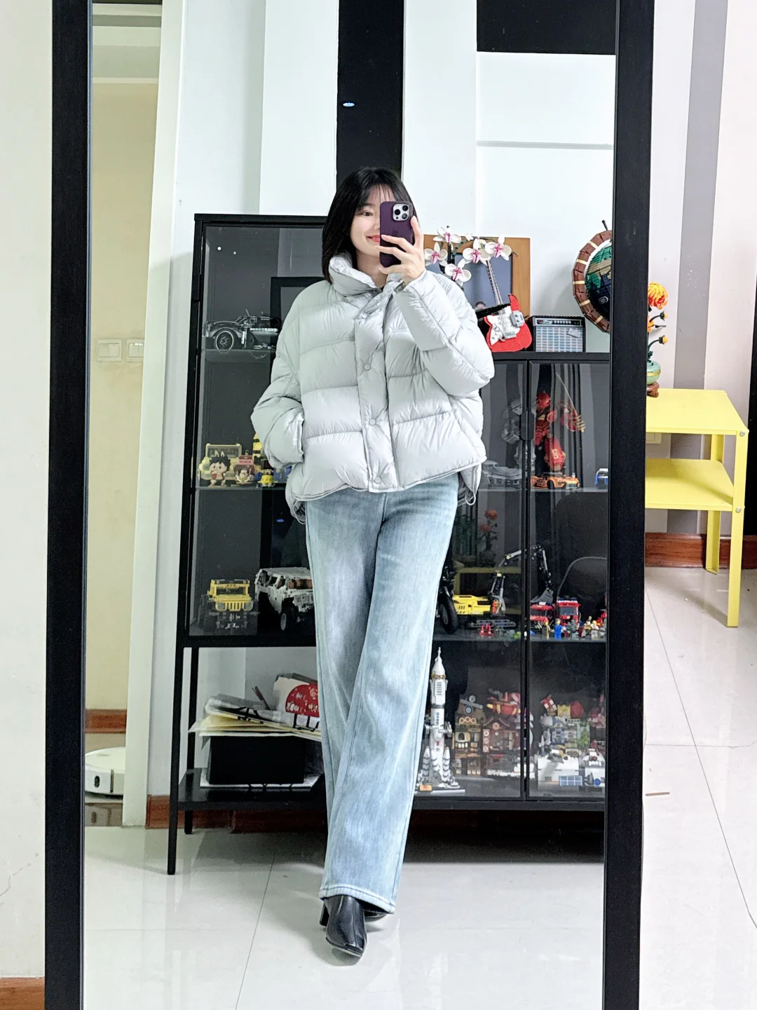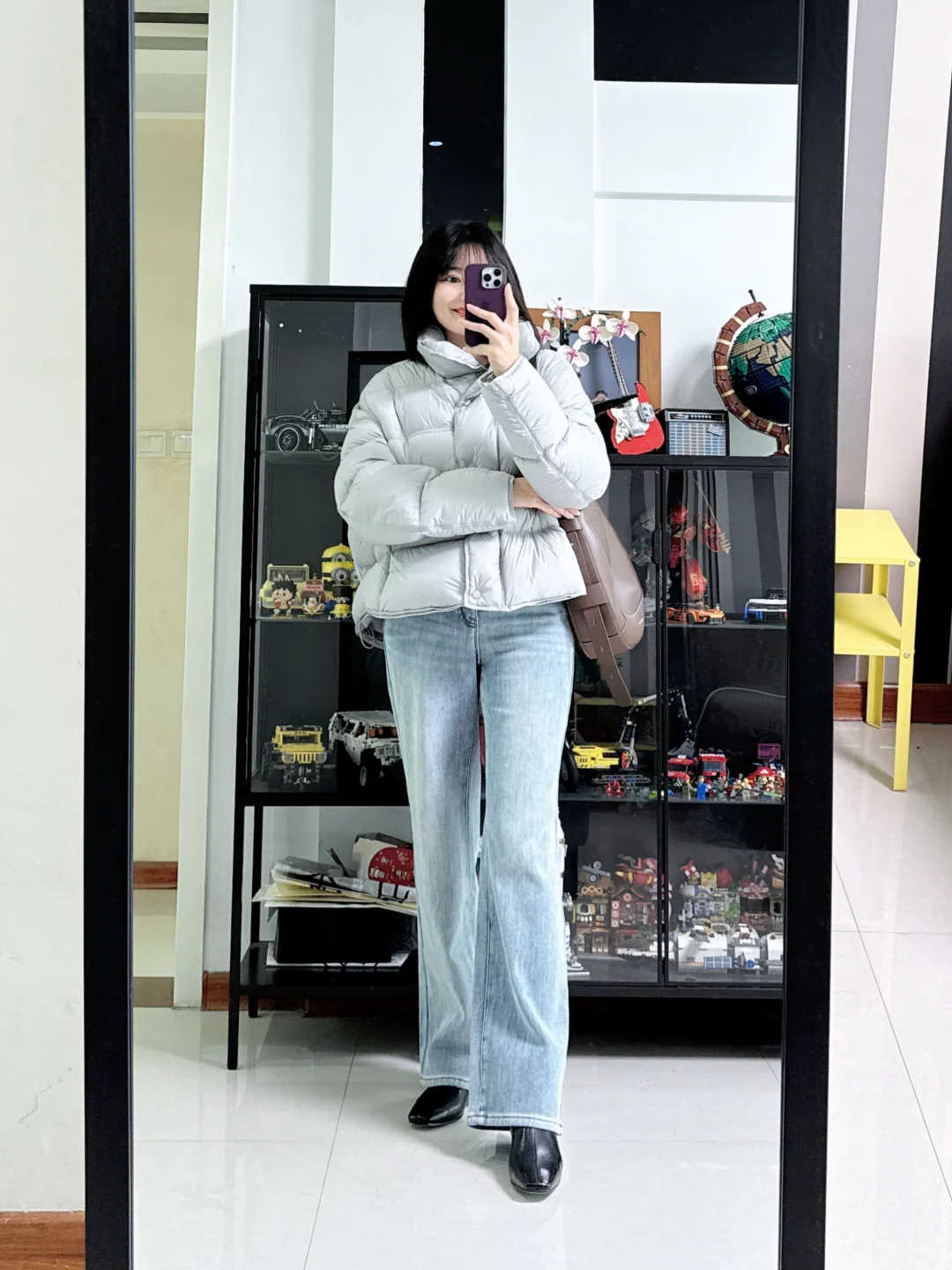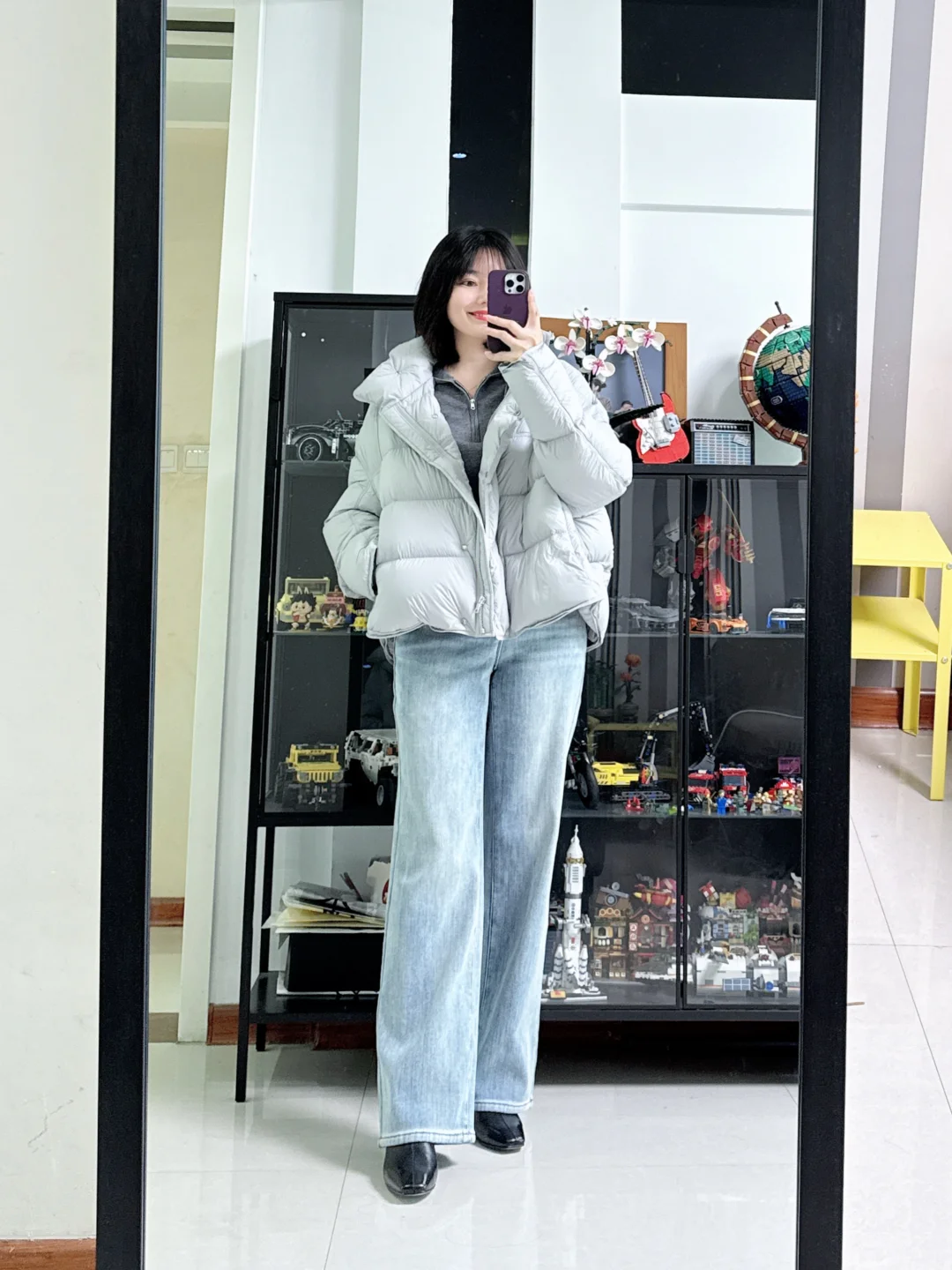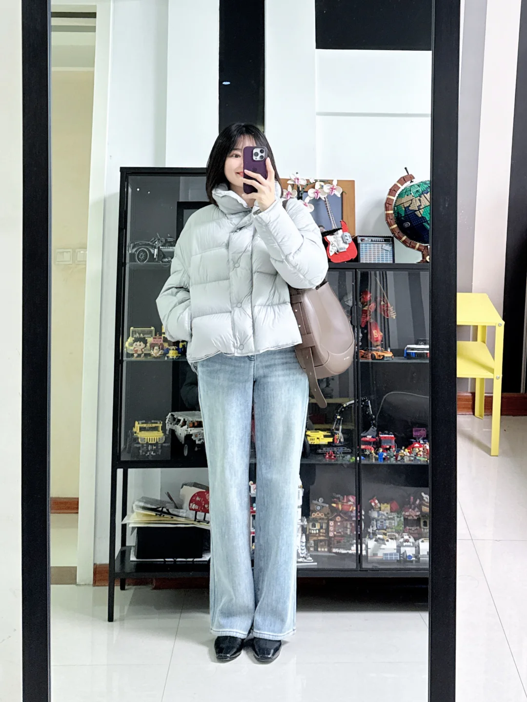 👩今日穿搭:海盐灰羽绒服,干净利落,搭配加绒牛仔裤,上班通勤和日常休闲都可以,兼具温暖与时髦。