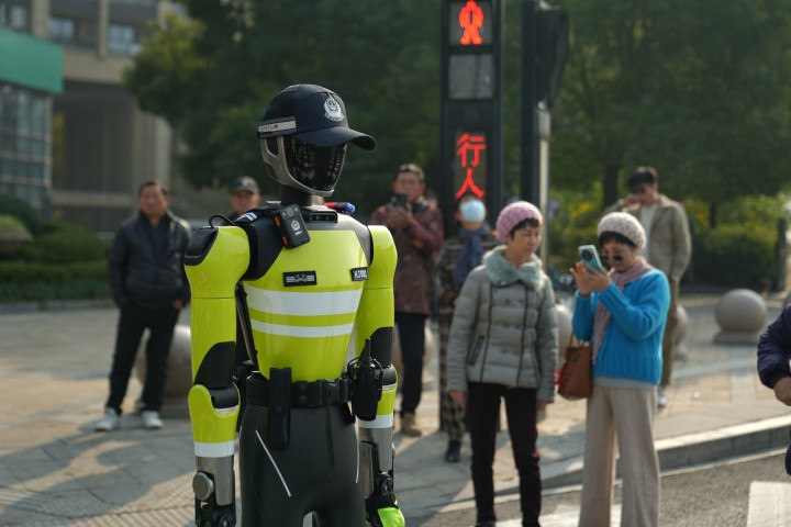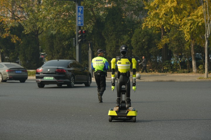 “自今年10月起,‘杭行1号’已在滨江多个路口开展实战测试,后续将搭载大语言模型,实现语音交互、指令控制,辅助问路指引、交管咨询、安全宣教等便民服务。同时,杭州交警正在设计研发新一代交管机器人,并探索组建杭州交通管理机器人警队,成为交警新质战斗力的‘生力军’”。