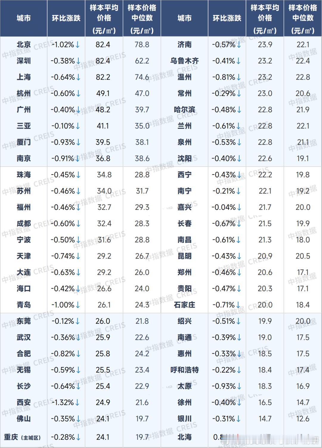 25年11月主要城市房价与租金下跌情况