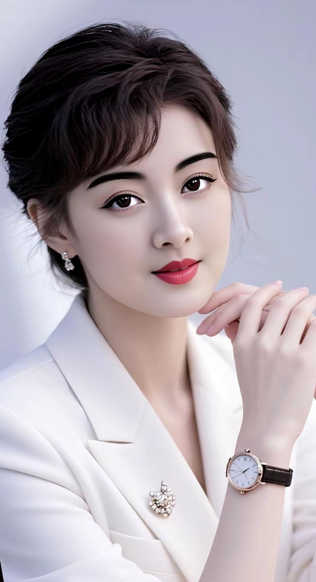 优雅黑发美人,闪耀珠宝项链,红唇白裙,气质非凡!