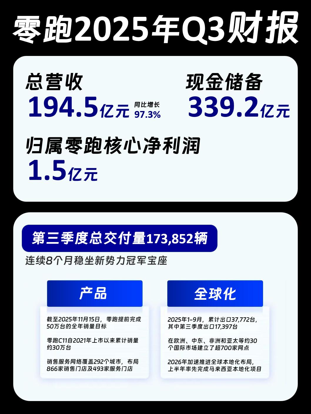 11月成绩出炉,零跑又创造交付纪录了! 12月1日一早,零跑汽车率先公布品牌11月份销量数据,以70327台的成绩再次突破7万大关,相比10月份略有增长,只能说,零跑屡破纪录已经成为常态。随着11月热销,零跑已于11月中旬提前完成年度50万台的销量目标,至月底今年的累计销量达到53万+。 短时间内就取得这样的成就,零跑的成功之道值得友商学习,可要说它的经验是什么,我觉得首先是“好而不贵”。得益于始终坚持全域自研的发展理念,零跑目前已经拥有绝大多数核心技术自研自产的能力,制造成本显著降低,所以它旗下车型既有越级配置体验,又有低于竞品的价格。 以零跑C11为例,15万左右预算即可开走这台新能源中型SUV,增程版车型纯电续航300km、纯电版车型续航可达640km,并具有800V高压快充、激光雷达、8295P座舱芯片、前排座椅加热通风按摩、后排座椅加热通风等丰富功能配置,难怪累计销量超过了30万。 随着更多“好而不贵”的零跑车型上市,如A10、D19,零跑冲击26年百万销量目标,将会有更大的把握。而且零跑还推出了年底最后一波大促,直接给到现金优惠,整体力度比双十一更大,3C+2B全系普惠,购置税减免倒计时,先到先得。