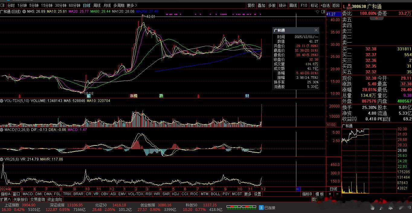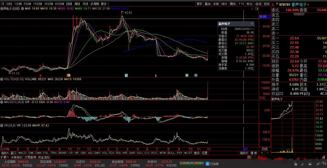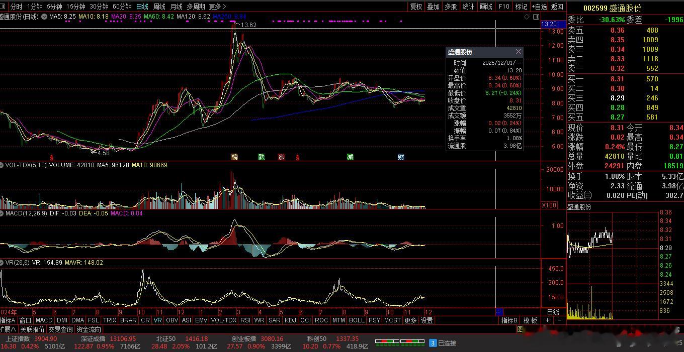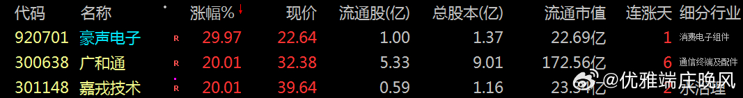 【财富晚茶】午盘透析(12.01):北证涨幅涨2.05%:影视反弹风电回调导语:作者系《网易号》优质财经领域创作者。曾经原创作者和知名网易号旅游领域创作者。大跨度行业等的写作,颇受网友喜爱。作品发表于2025.12.01.12:18 优雅端庄晚风。(标题作品:2025年票房最高:美国动画片:疯狂动物城2)【内容概述】今日股市午评:截止11:30:沪指:贡献1根阳线0阴线。深指:贡献1根阳线0阴线。沪指突破:阻力位:03888点。沪指跌破:支撑位:03856点。深指突破:阻力位:13000点。深指突破:支撑位:12834点。追寻盘面:沪深高开拉升兑现,尾盘主力巨资拉升。一、透析市场:风口公司,上下起伏002599 盛通股份 盘中02涨1、突破七年箱底视野盘面:前期双顶,筑底扎实:2025-12-01 截至11:30:股价报收:8.31元。股指上涨:0.24%。成交总量:42810手,成交金额:3552万元。总换手率1.08%,观总市值:44.27亿元。流通市值:33.07亿元。2、印刷科教翘楚主营业务:印刷-科技教育的研产和销售。公司品牌:中国印刷百强企业。3、营收净利优秀业绩好转:2025-09-30 三季度报:公司营收:15.3696亿 同比增2.17%。公司净利:867.4029万 同比增1818.07%。二、沪深红盘:多方强势,喜剧股市今天目击:沪深北市:早盘:高开三涨,四跌三涨。尾盘:一跌四涨,次低红盘。看点之一:沪深北指:开盘高开:瞬间见顶。杀跌兑现:主力进场。看点之二:北指强势:最高涨2.05%。看点之三:沪深北市:半日成交:12368亿元。盘面追踪:3672股飘红。三、沪深阳棒:个股强势,赚钱效应沪深追踪:截至午间:市场收盘:沪指涨0.42%报3904.90点,深指涨0.95%,创指涨0.90%,北证50指涨2.05%,沪深北市:12368亿元,较前一日放量2531亿元。四、盘面观察:影视脉冲,风电回落1、板块扫描透析沪深板块:板块走强:影视、通讯设备、稀有金属、旅游、林业等。板块回调:风电、轨交、电子商务等。概念活跃:DRG-DIP、电子身份证、鸡肉等。2、个股涨跌起伏沪深北市:多空遭遇。3672股票上涨,72涨停板。1592股票下跌,5股跌停板。沪深北市:合计成交:12368亿元。午盘视野:沪高深低强势次高,尾盘高位筹码兑现。五、沪深涨跌:三甲前茅,安不忘危1、今日涨幅谁家主旋律:天经地义:风口股票涨停板920701 豪声电子 300638 广和通 301148 嘉戎技术第一、涨幅榜眼排行榜-1:920701 豪声电子主营业务:微型电声元器件-音响类电声产品研产和销售。公司品牌:国内一流电子部件企业。排行榜-2:300638 广和通主营业务:无线通信模块研产和销售。公司品牌:全球领先的膜技术公司。排行榜-3:301148 嘉戎技术主营业务:膜分离装备-高性能膜组件-高浓度污废水处理的研产和销售。公司品牌:国内领先的半导导体和集成电路设计企业。技术看盘-1:920701 豪声电子。潜力股票-1:920701 豪声电子:国内一流电子部件企业。风险股票-1:暂时没有:即无301092 争光股份。2、今日跌幅谁家主旋律:摇摇欲坠:弱势股票涨停板688719 爱科赛博 300779 惠城环保 688382 益方生物跌幅榜-1:688719 爱科赛博主营业务:电力电子变换-控制设备的研产和销售。公司品牌:国内一流国际知名先进电力电子设备供应商。跌幅榜-2:300779 惠城环保主营业务:废催化剂处理处置-复活催化剂、再生平衡剂等资源化综合利用产品的研产和销售。公司品牌:绿色环保循环经济引领者。跌幅榜-3:688382 益方生物主营业务:创新药物的研产和销售。公司品牌:全球和国内创新药的领先企业。六、创作不易:优质网易,财经作者投资投机迷茫之中:给予尽可能有帮助:资本市场风险自负。(优雅端庄晚风《网易号》财经领域创作者和原创作者 违者必究)