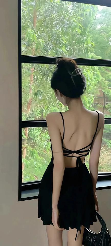 慵懒午后,黑裙少女,轻抚发梢,静享时光。分享你一张最喜欢的手机壁纸 绝美写真推荐