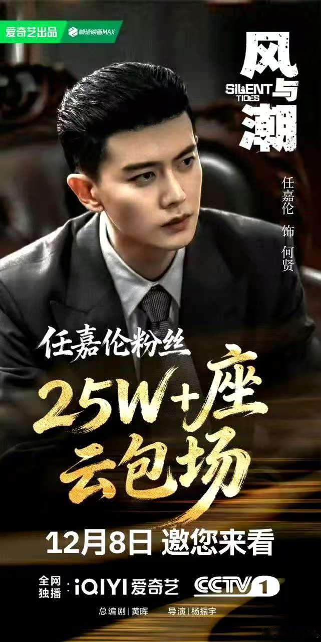 任嘉伦粉丝风与潮云包场20万欢迎大家来看《风与潮》!任嘉伦粉丝为大家准备了25w➕的云包场,请大家免费看《风与潮》,12月8日晚我们在271和CCTV1不见不散!