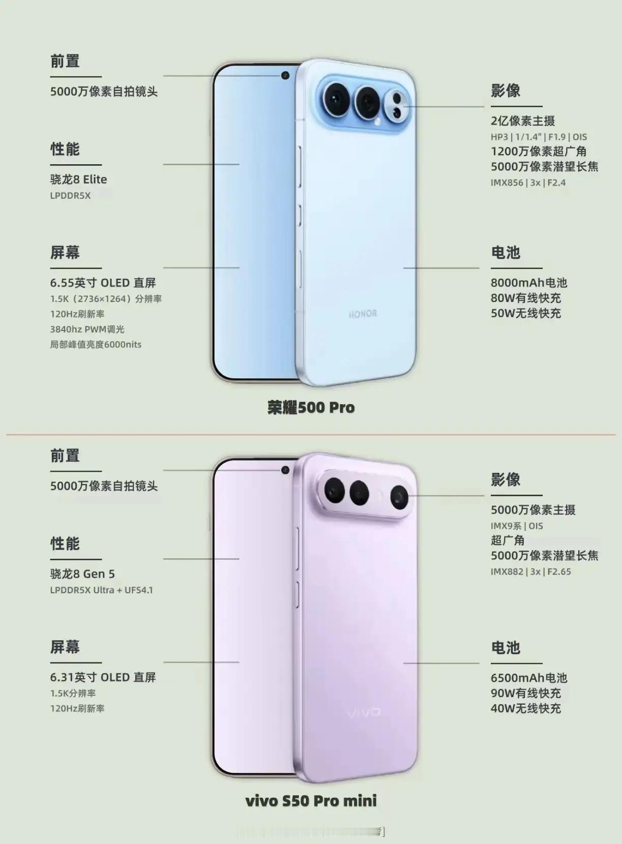 🔥卷疯了!中端机现在都这么卷?旗舰配置直接焊死成标配!🔥 别纠结谁抄谁了!现在这设计风格早就被大众吹爆!不管是8000mAh续航狂人的荣耀500Pro,还是6500mAh小钢炮vivo S50Pro mini,一眼就能看出:旗舰芯片居然普及到中端机了! 金属中框、超声波指纹、IP69级防水…这些以前旗舰机才有的“奢侈品”,现在中端机直接拉满!搁以前想都不敢想啊家人们! 目前来看,荣耀500Pro在续航和拍照上直接占了大优势,就看蓝厂能不能在价格上放大招扳回一城了!这波中端机大战,你站哪边?💥