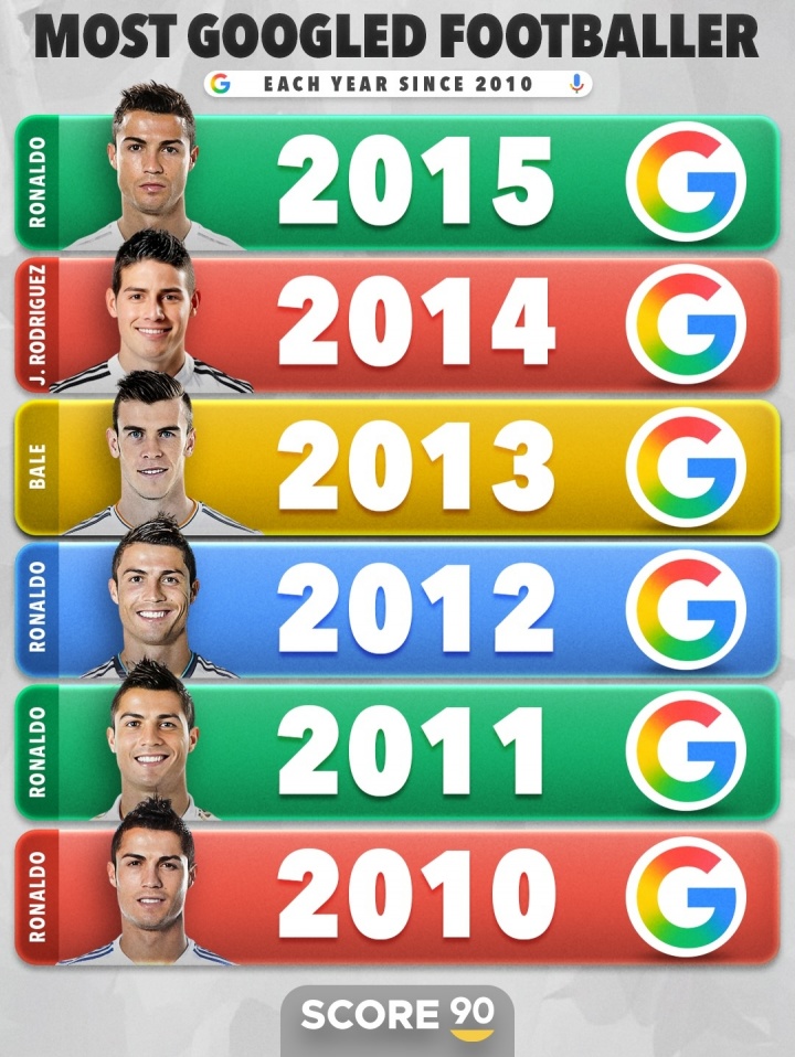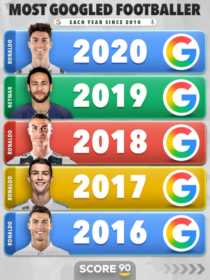 直播吧12月01日讯Score90统计了近十五年谷歌搜索量最多的球员,C罗是目前足坛2025年谷歌搜索量第一人,近15年C罗10次登顶。