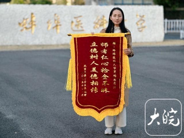 因当时忙于课程筹备,吴涛未能及时表达更深切的感激。一个多月来,葛梅英的善举始终萦绕在他心头。为传递敬意,吴涛特意定制了锦旗,通过快递寄往蚌埠医科大学。