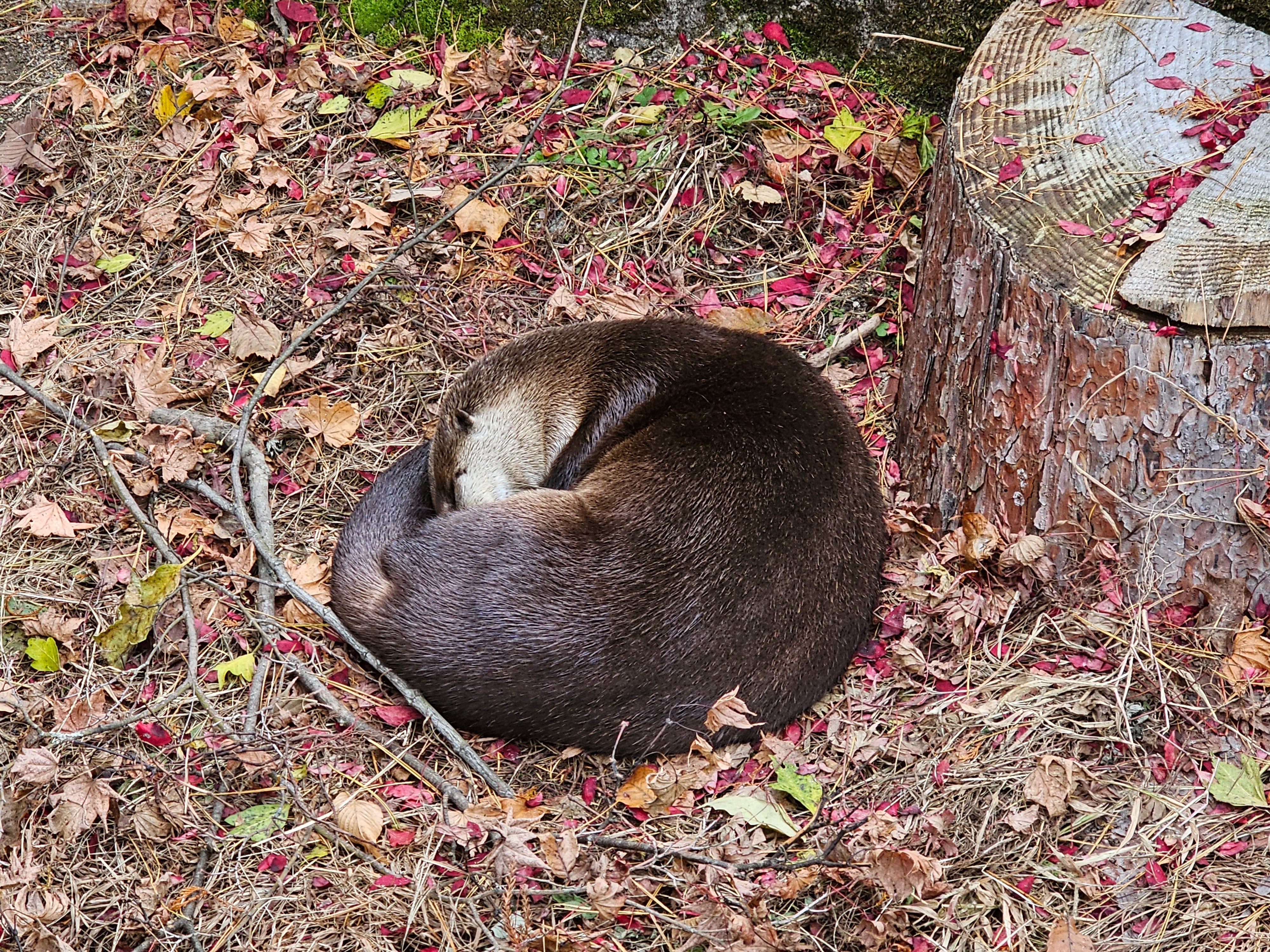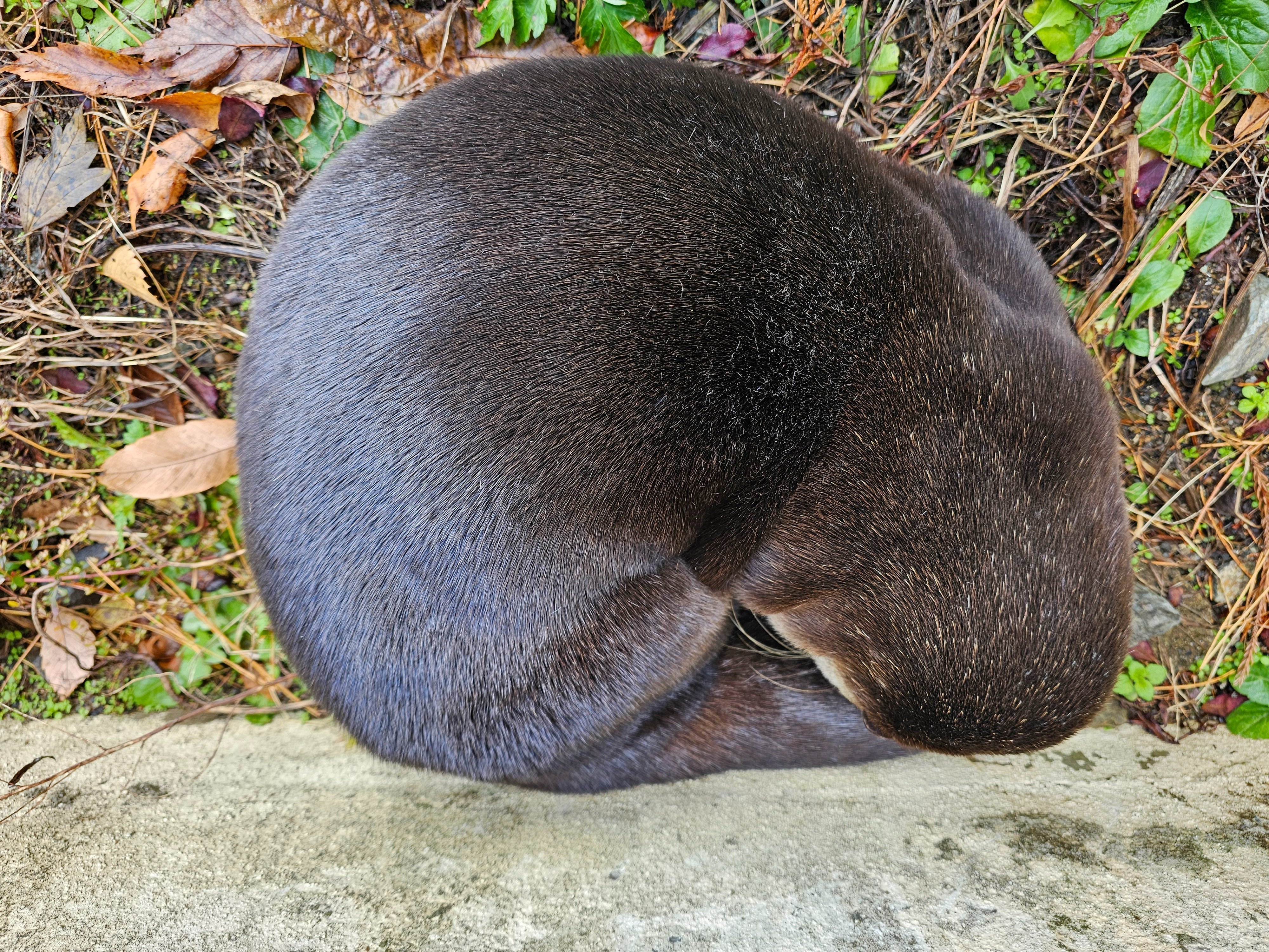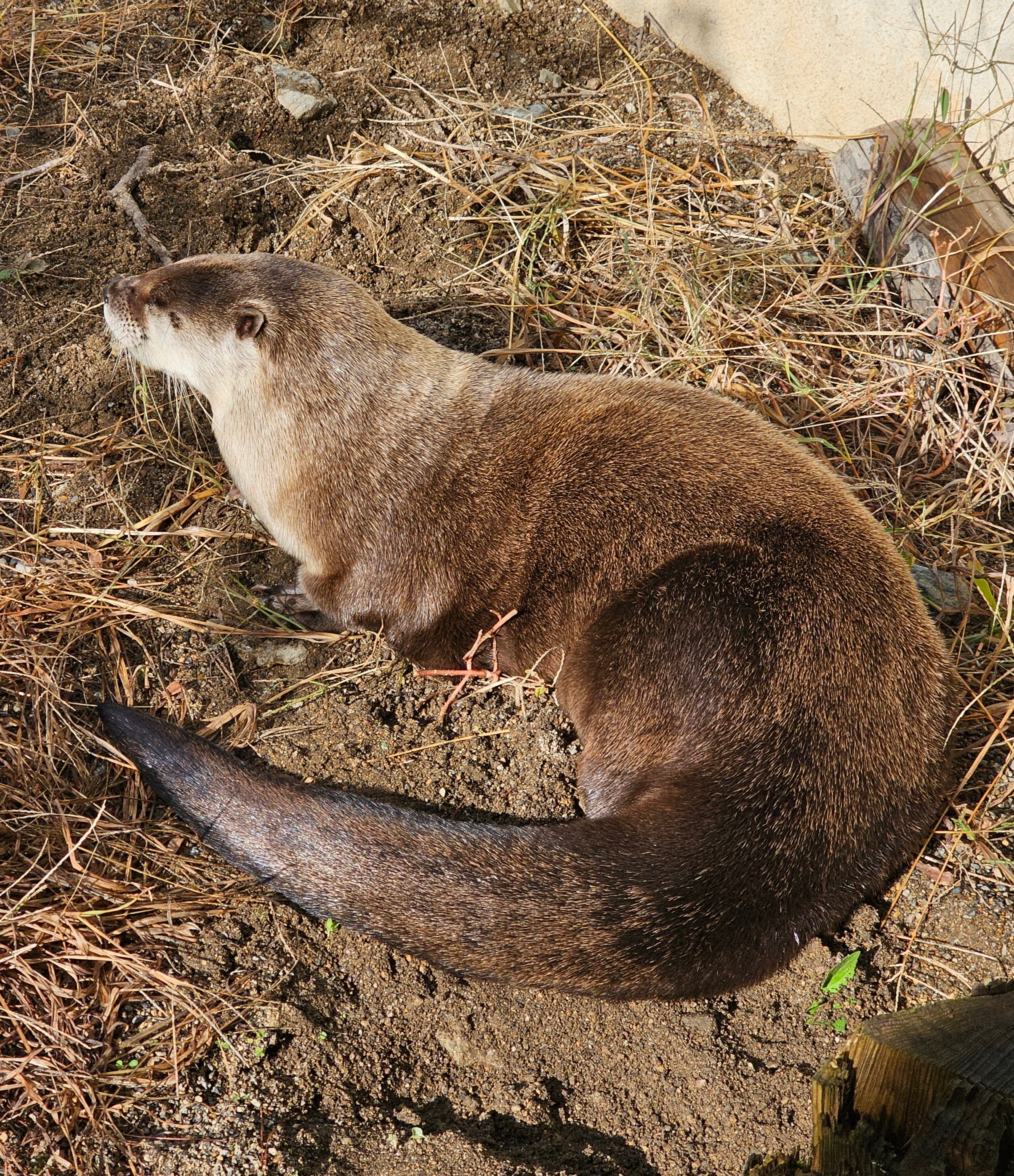 水獭 天呐和亚洲小爪比起来,北美水獭长得真的是油光水滑的~我第一次发现他们的尾巴