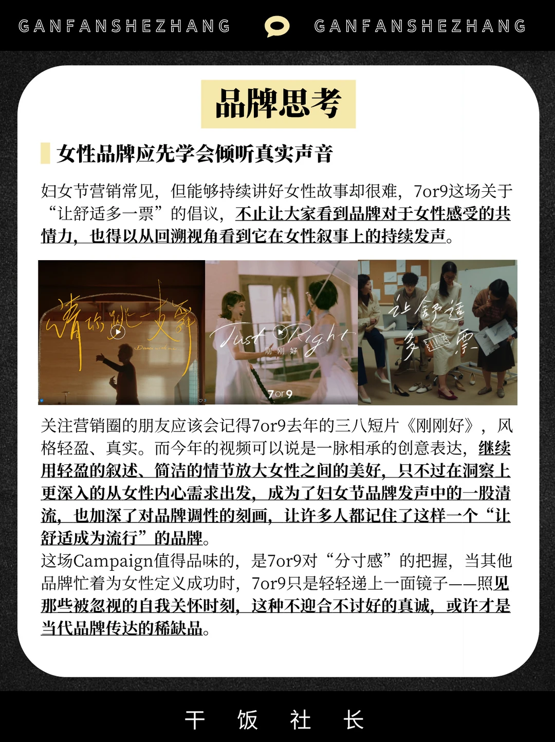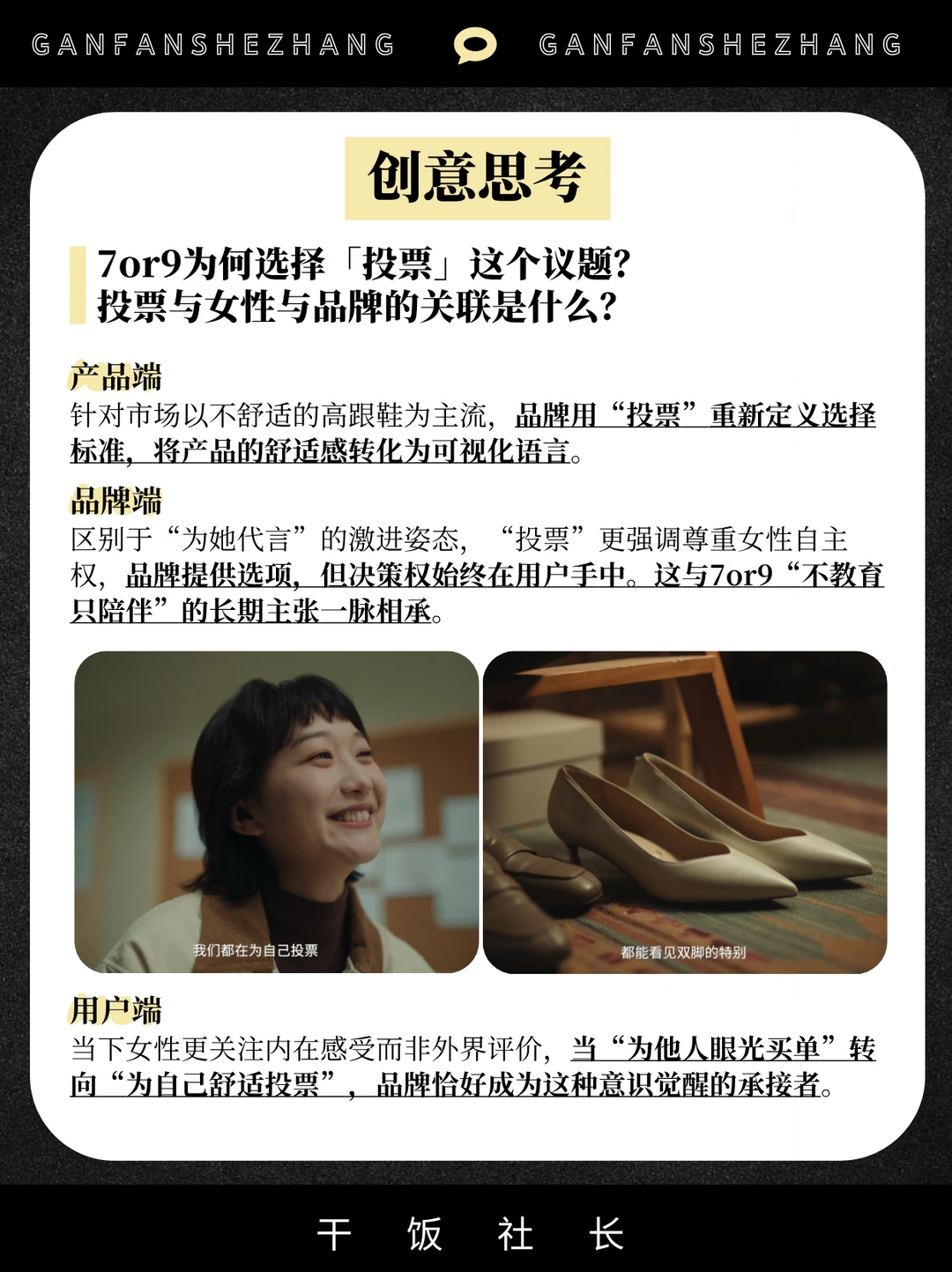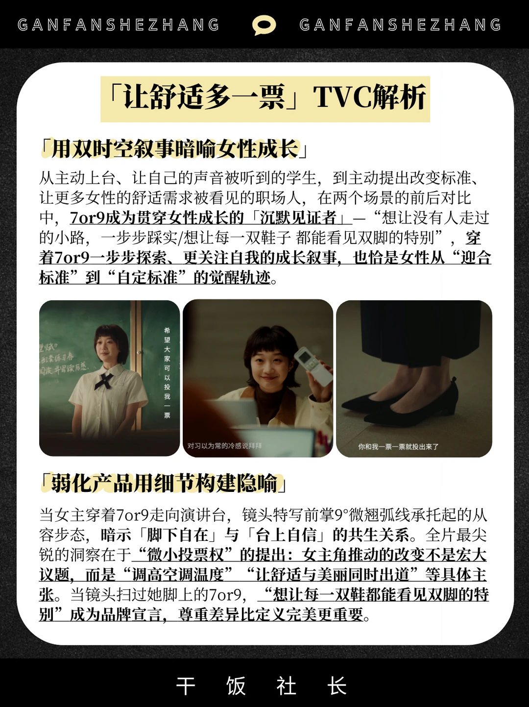 在全年营销日历中,妇女节始终占据特殊地位 当行业叙事长期被“独立女性”等宏大话语主导 当营销创意陷入同质化表达 消费者的情感敏感度正在下降。 在这一节点[向右R] 7or9展现了独特的视角与创新的动作 作为专注舒适的女鞋品牌 7or9通过「让舒适多一票」品牌TVC 与用户进行了一次精准的价值观共振 用产品为底气支持女性主动投票 选出「更舒适的明天」 通过TVC发声+用户互动回响 将产品功能升维为情感认同 在38妇女节女性营销的红海中走出一条 属于7or9克制且温暖的差异化路径