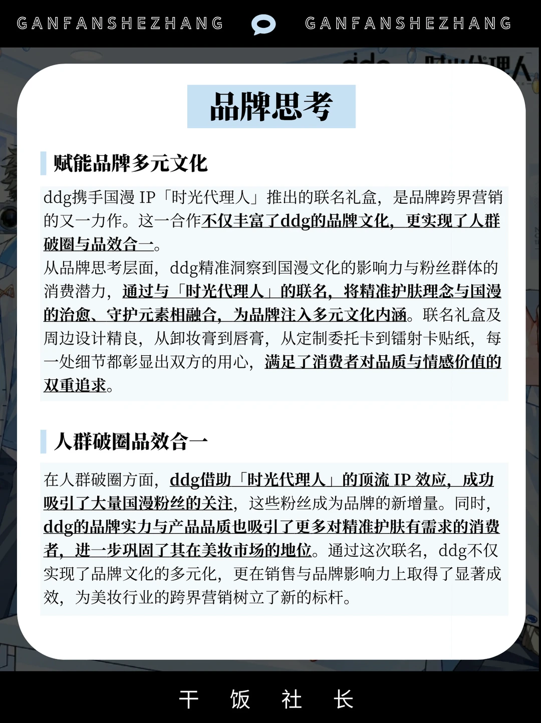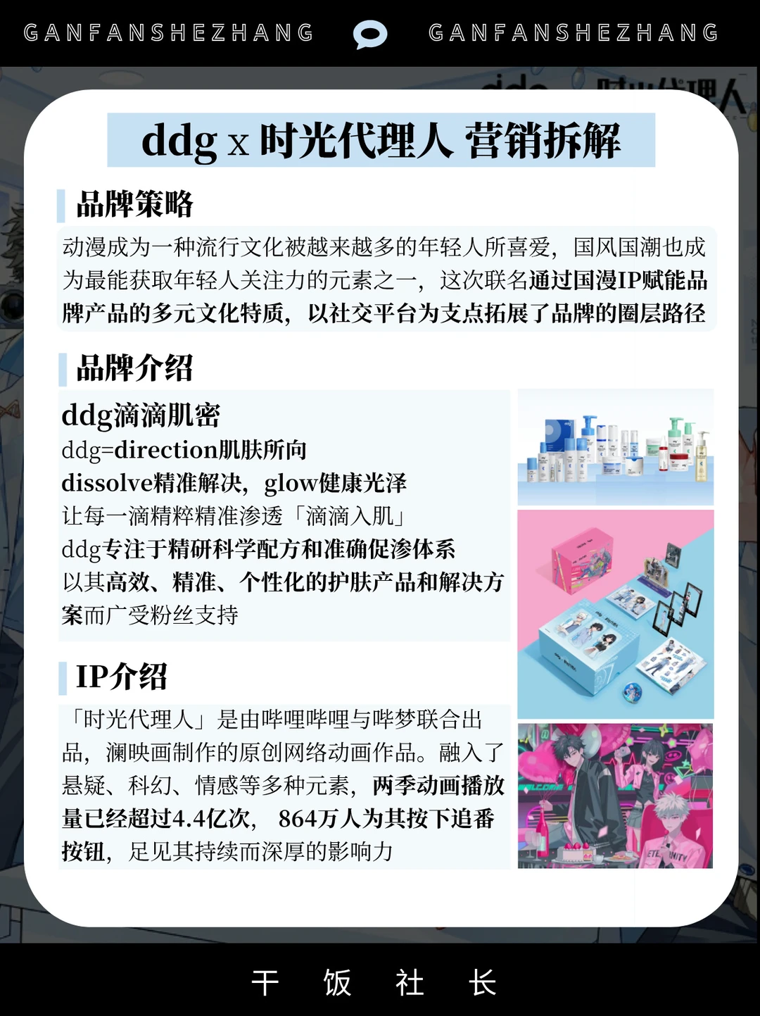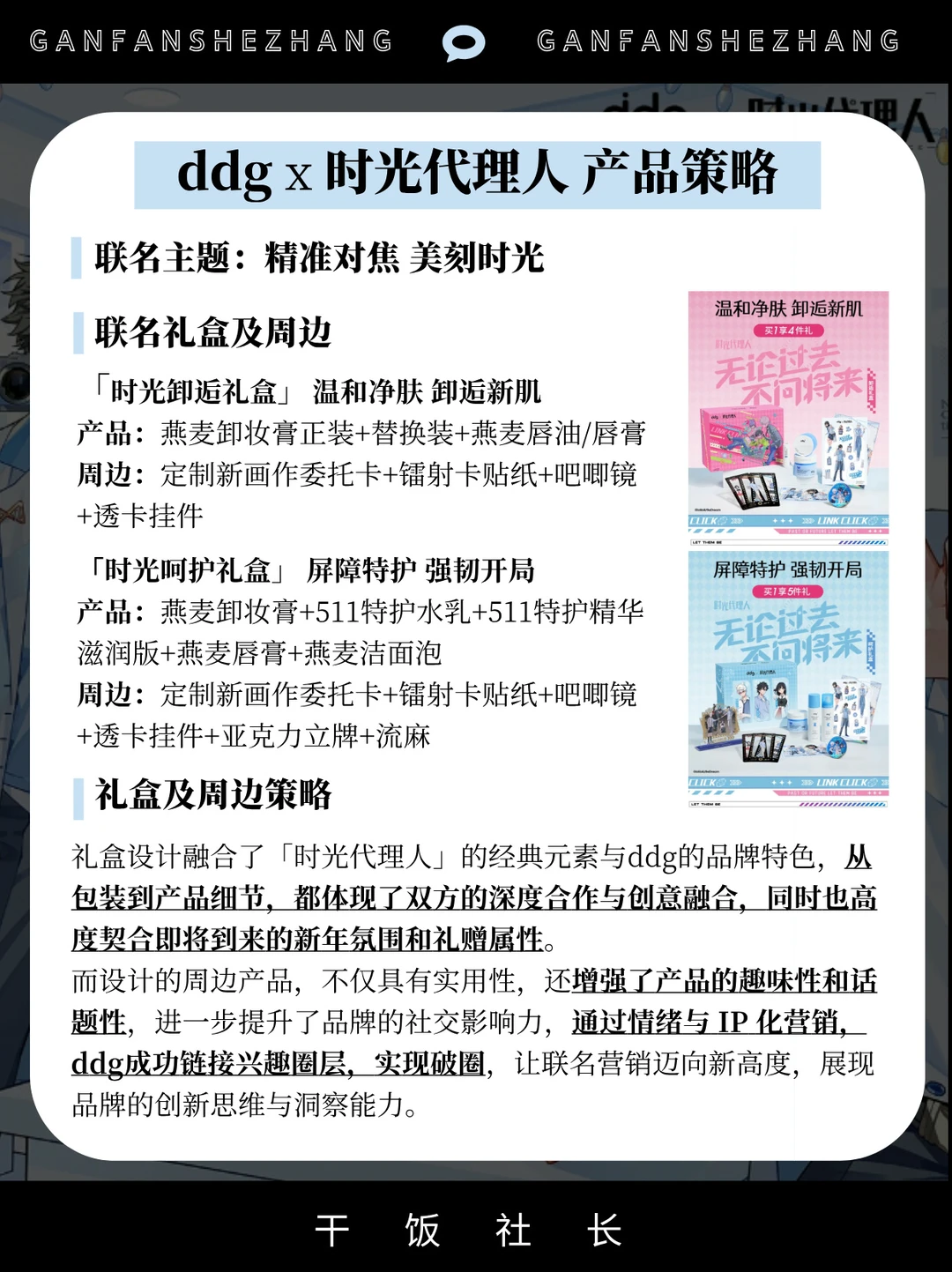 开年就是王炸,ddg的这个联名也太好磕了 ddg作为精准护肤的实力品牌🏆 在跨界营销上一直都是美妆界的头号卷王 开年就官宣与国漫头号IP「时光代理人」的联名 并推出情绪颜值拉满的联名礼盒及周边💓 借助顶流IP与兴趣圈层进行了深度链接 形成一种更有社交属性和情绪价值的营销形态 用情绪+IP化让联名营销进入next level❗️