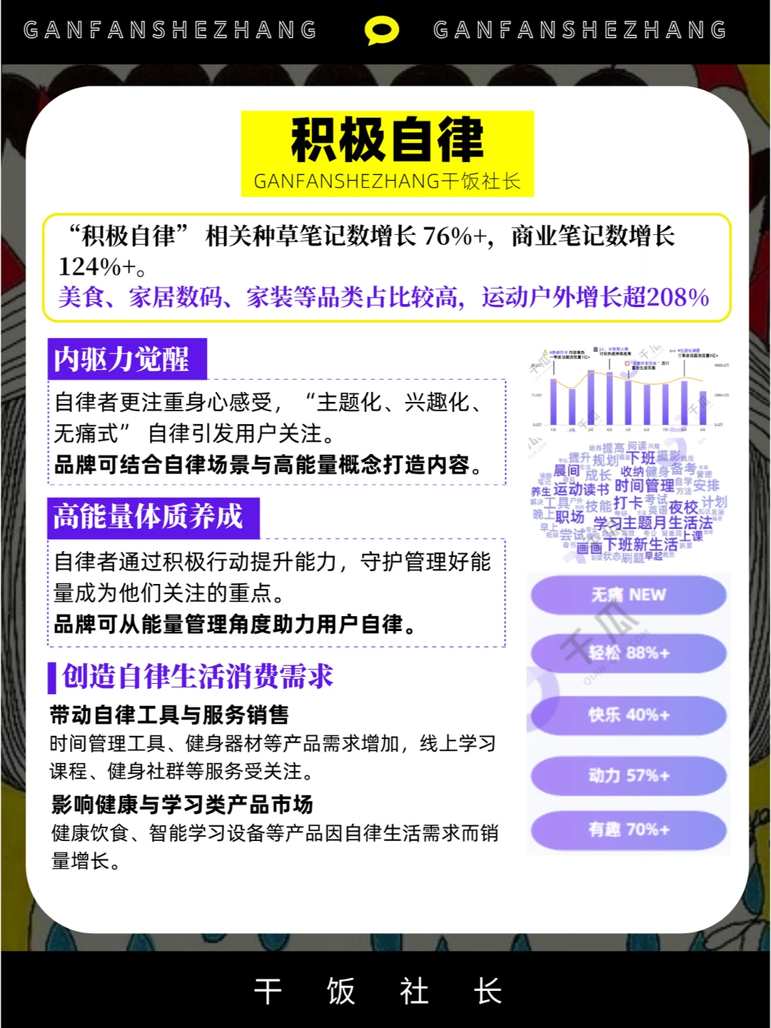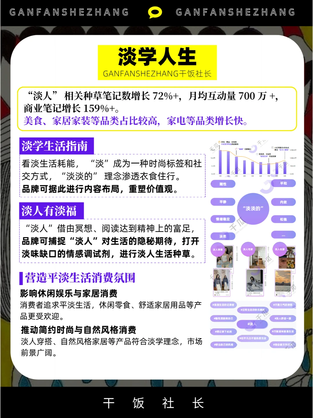 在当今社会,生活方式的选择 不仅反映了个人的喜好和价值观 更成为影响消费行为的关键因素 从追求健康生活到注重个性表达 从寻求新型陪伴到崇尚极简主义 每一种生活方式都蕴含着 独特的消费需求和市场潜力 本期分享是千瓜发布的 2024年“10大生活方式” 报告剖析了这些生活方式背后的 趋势和商业价值 也为品牌营销提供有价值的洞察角度 干货分享 品牌营销 商业思维 生活方式 年轻人的新型放松方式 品牌策划