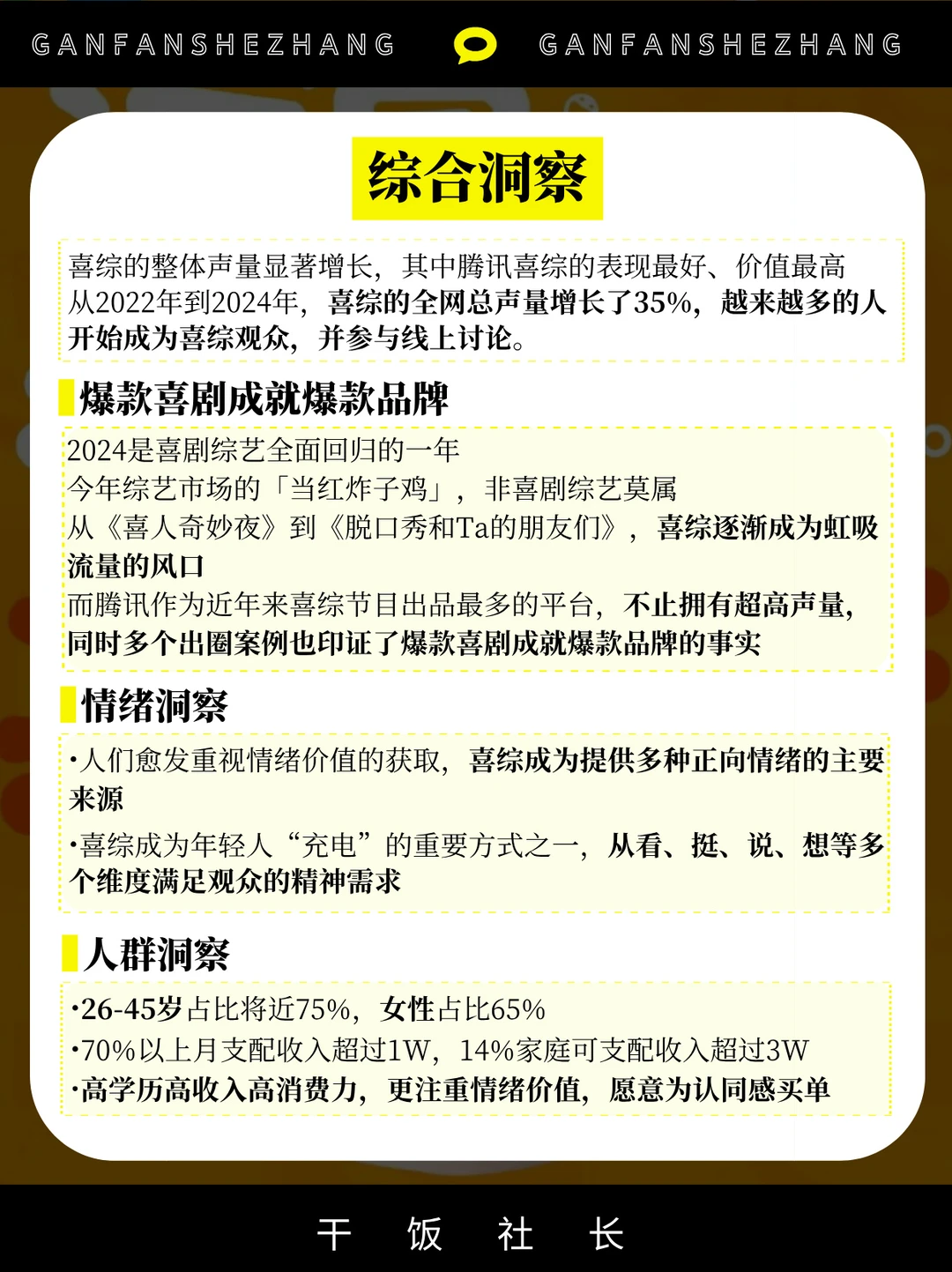 当压力、焦虑成为当代人的常态 喜剧便成了最好的避难所 2024年是喜剧市场复兴的一年 多巴胺所带来的情绪价值💓 不仅经由内容共振着观众,也联动着品牌与用户 让我们看到多巴胺效应背后巨大的商业价值 本期就增长黑盒的喜剧综艺商业价值报告 来一窥喜综是如何成为当下年轻人的快乐刚需❓ 又是如何帮助品牌自带出圈效果 产生更高的影响力和转化率❓