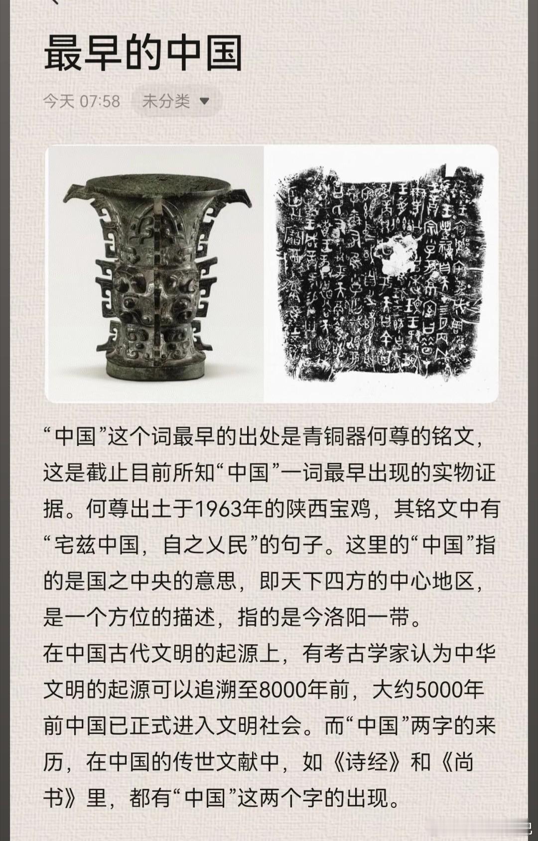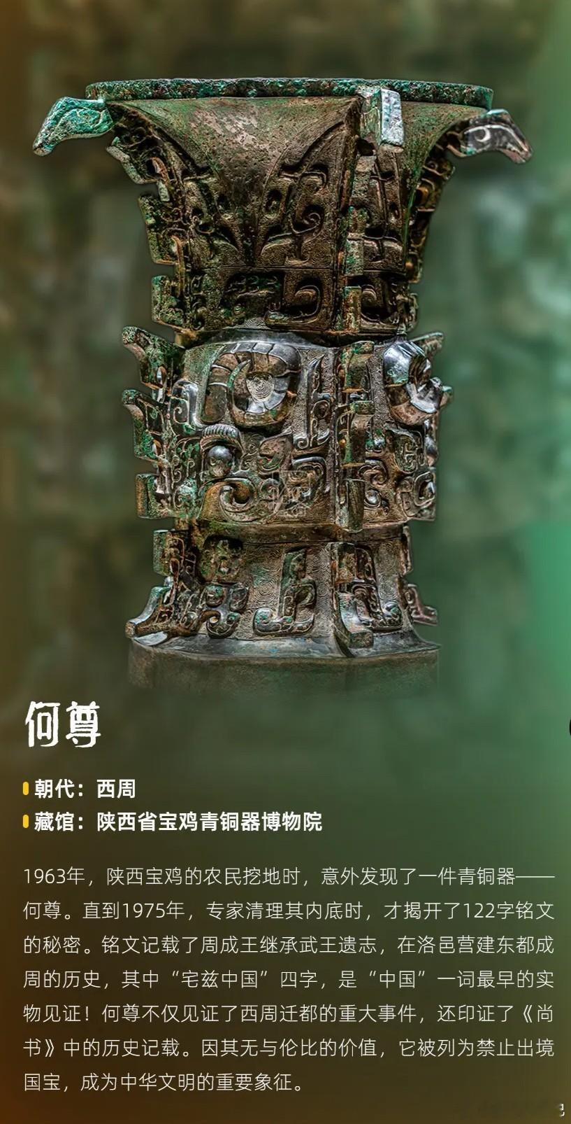 何尊宅兹中国国宝 《何尊》铭文内容:唯王初堙(迁)宅于成周,复禀武王礼福自天。在