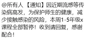 还有不少学校发出了“提倡老师和同学一起戴好口罩”的通知,也再次提醒“接种流感疫苗是预防和减轻症状的有效手段”。