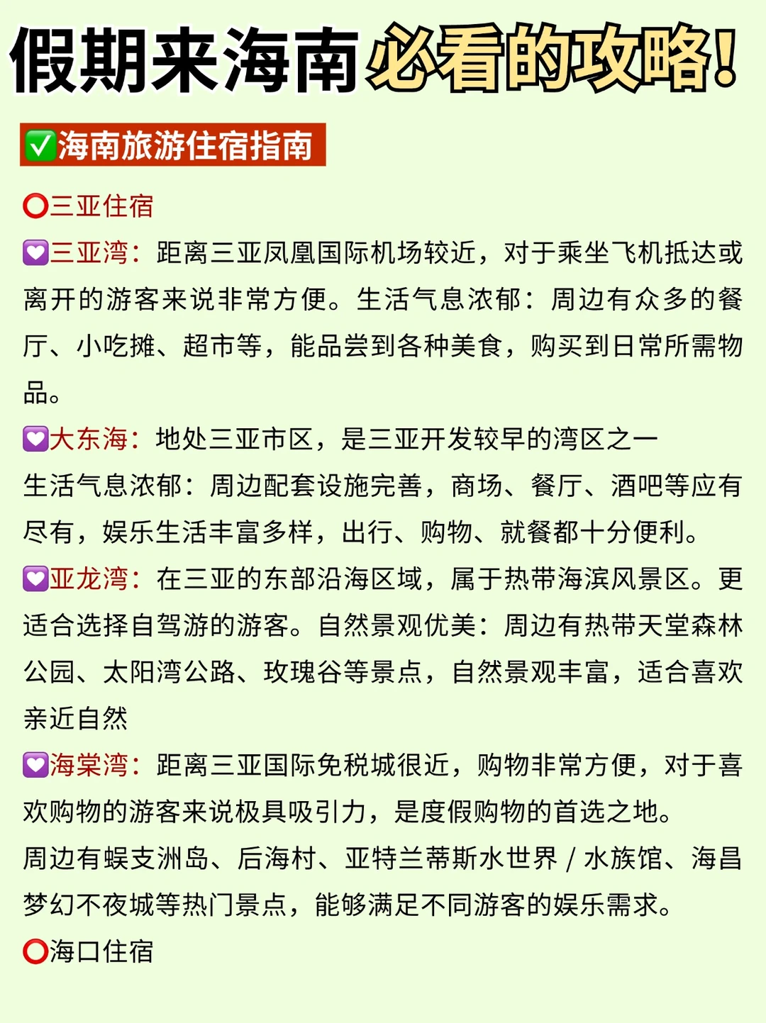 🔹三亚:椰梦长廊、南山文化、蜈支洲岛、热带天堂森林公园、西岛、天涯海角、鹿回头 🔹万宁:日月湾、石梅湾、神州半岛