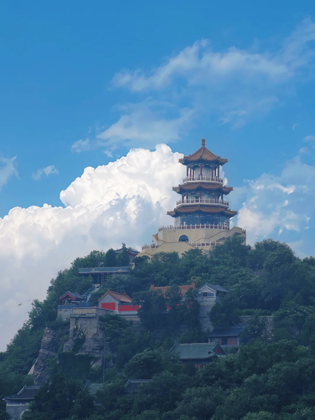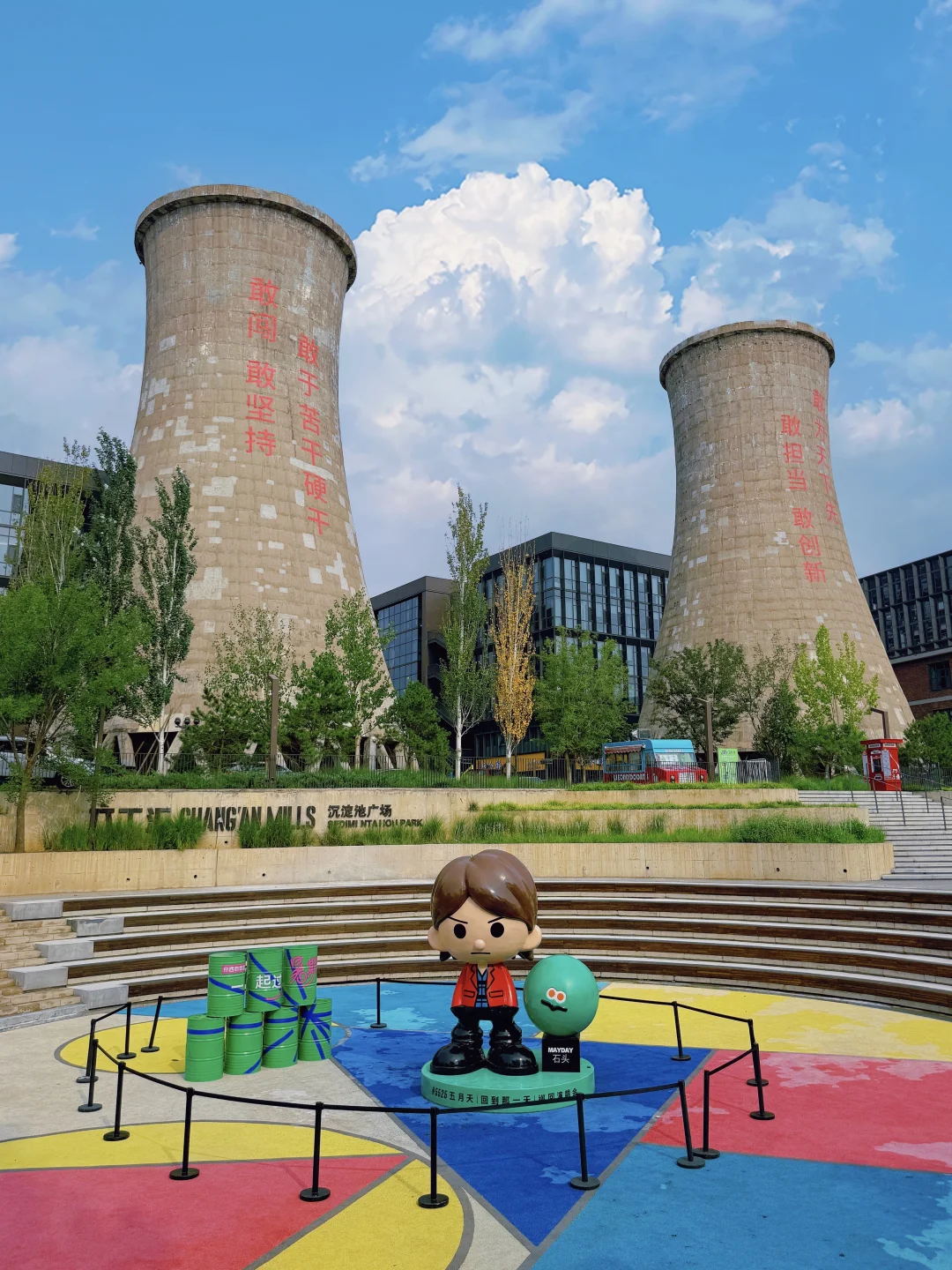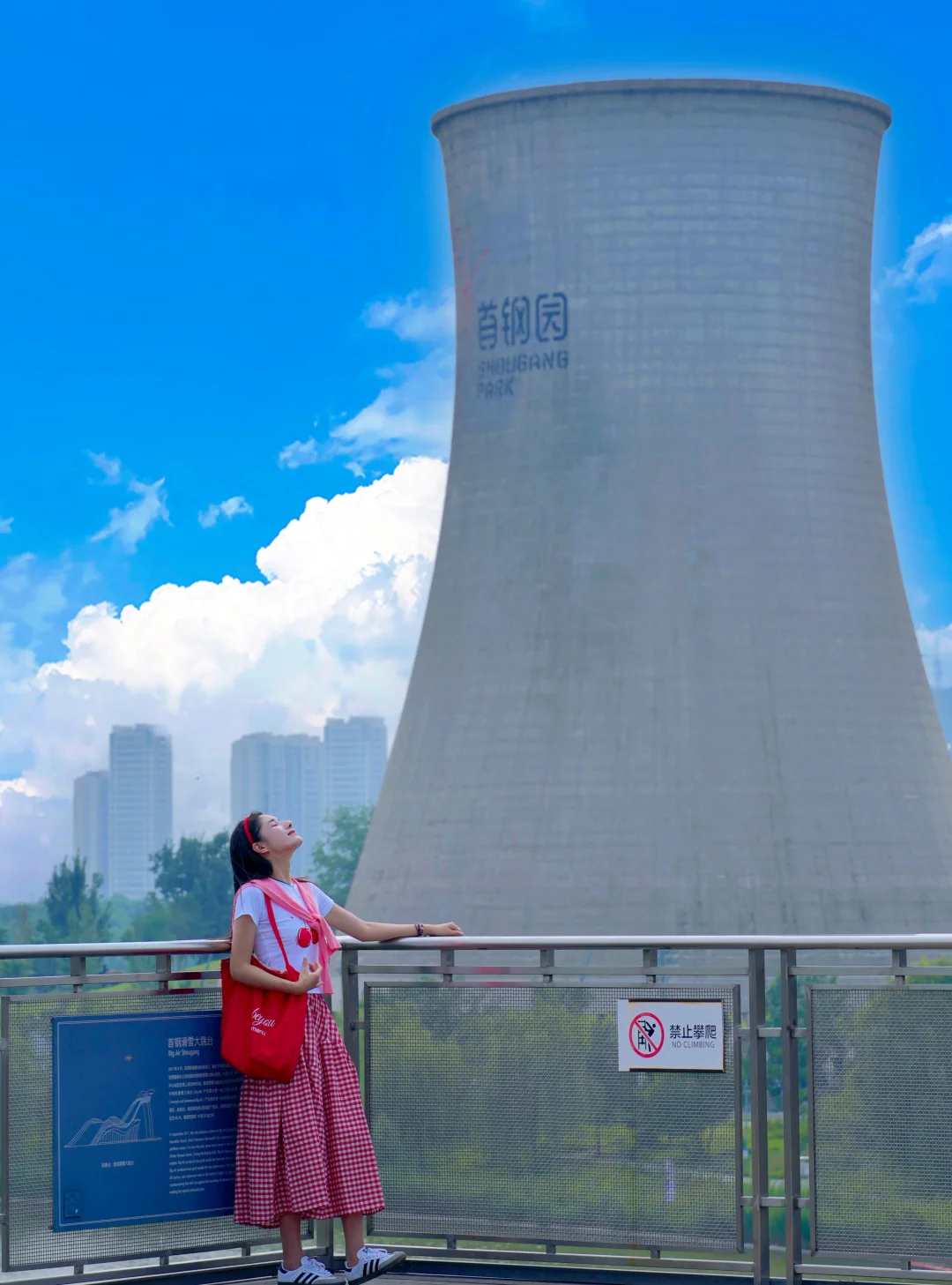 功碑阁三层海拔188米,15分钟登顶🏔俯瞰整个首钢园的美景,工业风和古建相结合,气泡水和甜品🍮也超不错