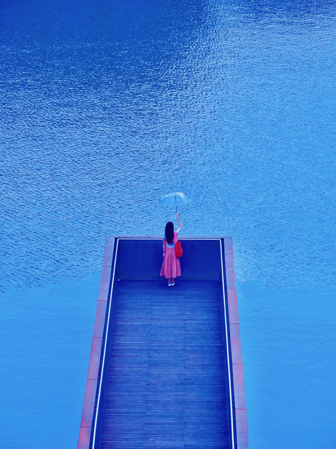 📍机位在空中步道3层,人物站在中间那一条通道,压低机位俯拍