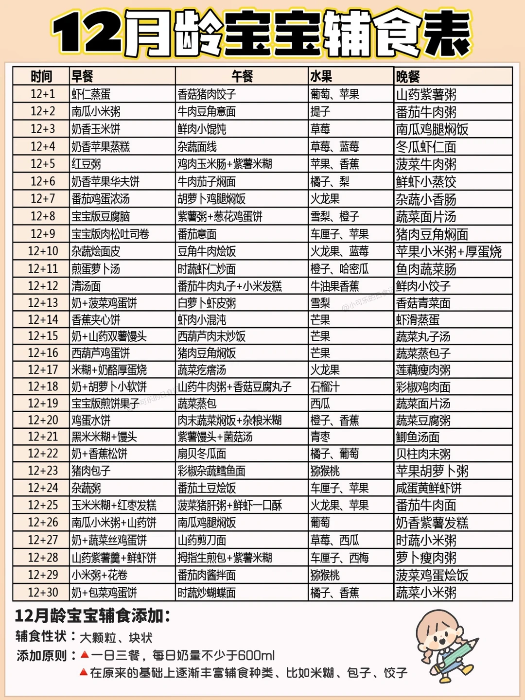 很多妈妈问宝宝什么时候添加辅食,食材添加顺序是怎么样?今天整理了6-12月龄宝宝的辅食表给大家参考一下,希望能帮到大家[飞吻R][飞吻R]