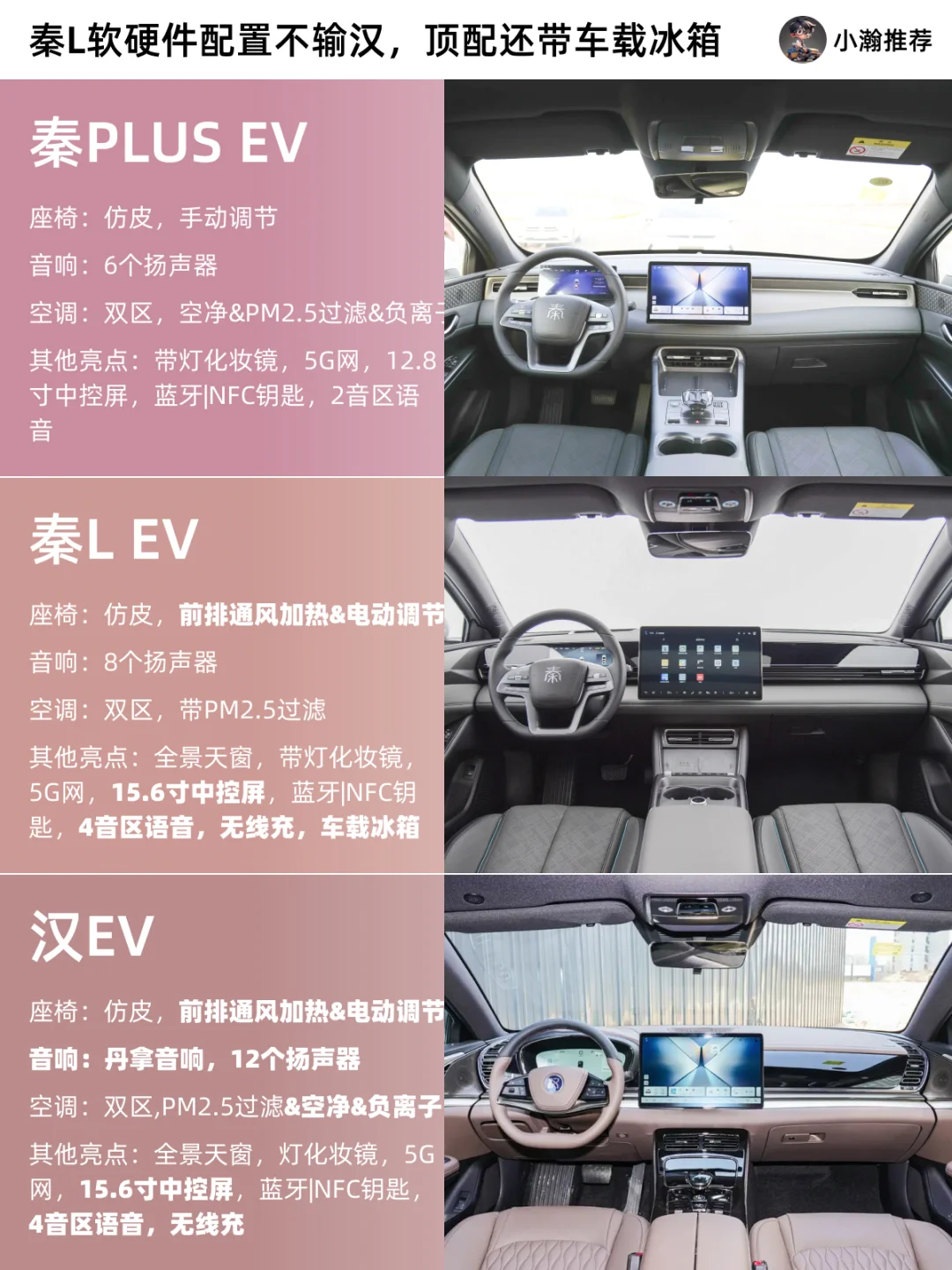 比亚迪秦L EV正式上市了!指导价11.98-13.98万元!不仅拥有比大哥汉和小弟秦Plus更ling先的纯电平台——e平台3.0evo,高配还安排上了车载冰箱!天神之眼C也同样全系搭载! 底盘、三电、智能以及舒适性配置在这个级别都算不错了!只是这外观和大哥小弟还是很像,作为年轻人的各位买账吗?