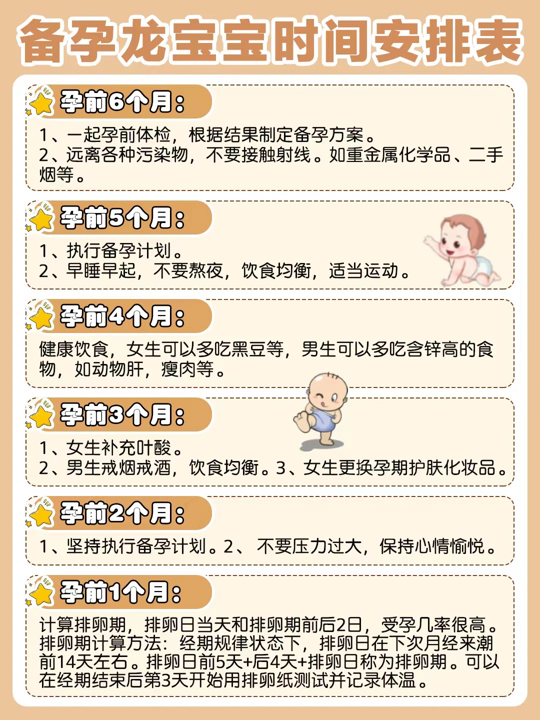 ❤️先来跟大家分享下我的备孕时间安排表。我是提前半年就开始备孕的。做了很多的准备工作,👉具体的都在图1,还有简单的排卵期计算方法,大家可以参考下。