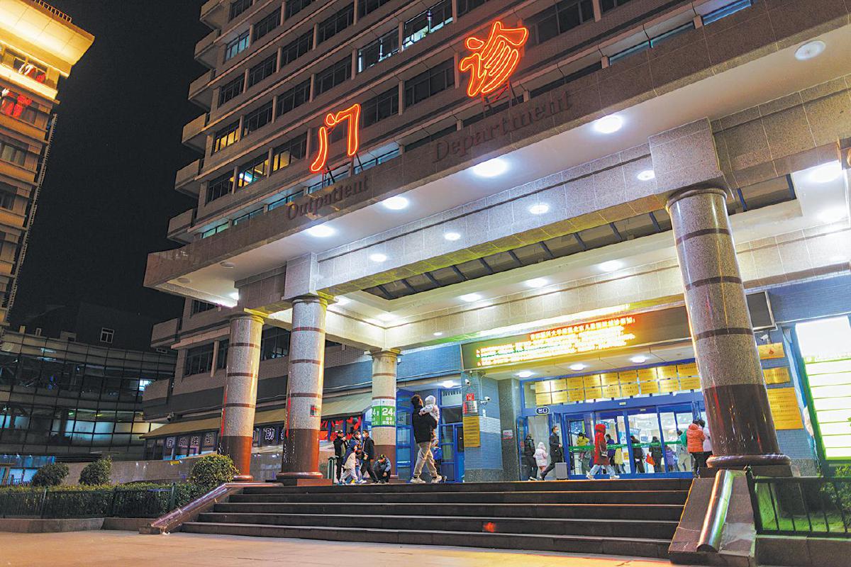 11月30日晚9时41分,北京儿童医院门诊楼前来往的患者。