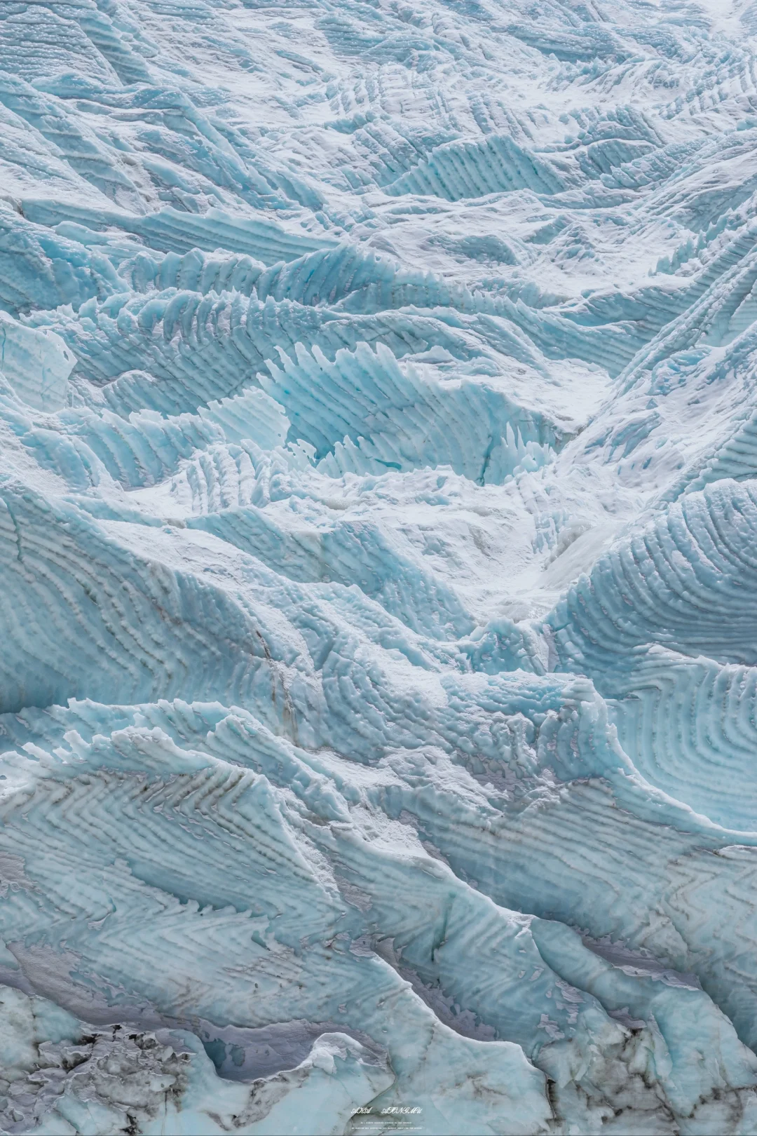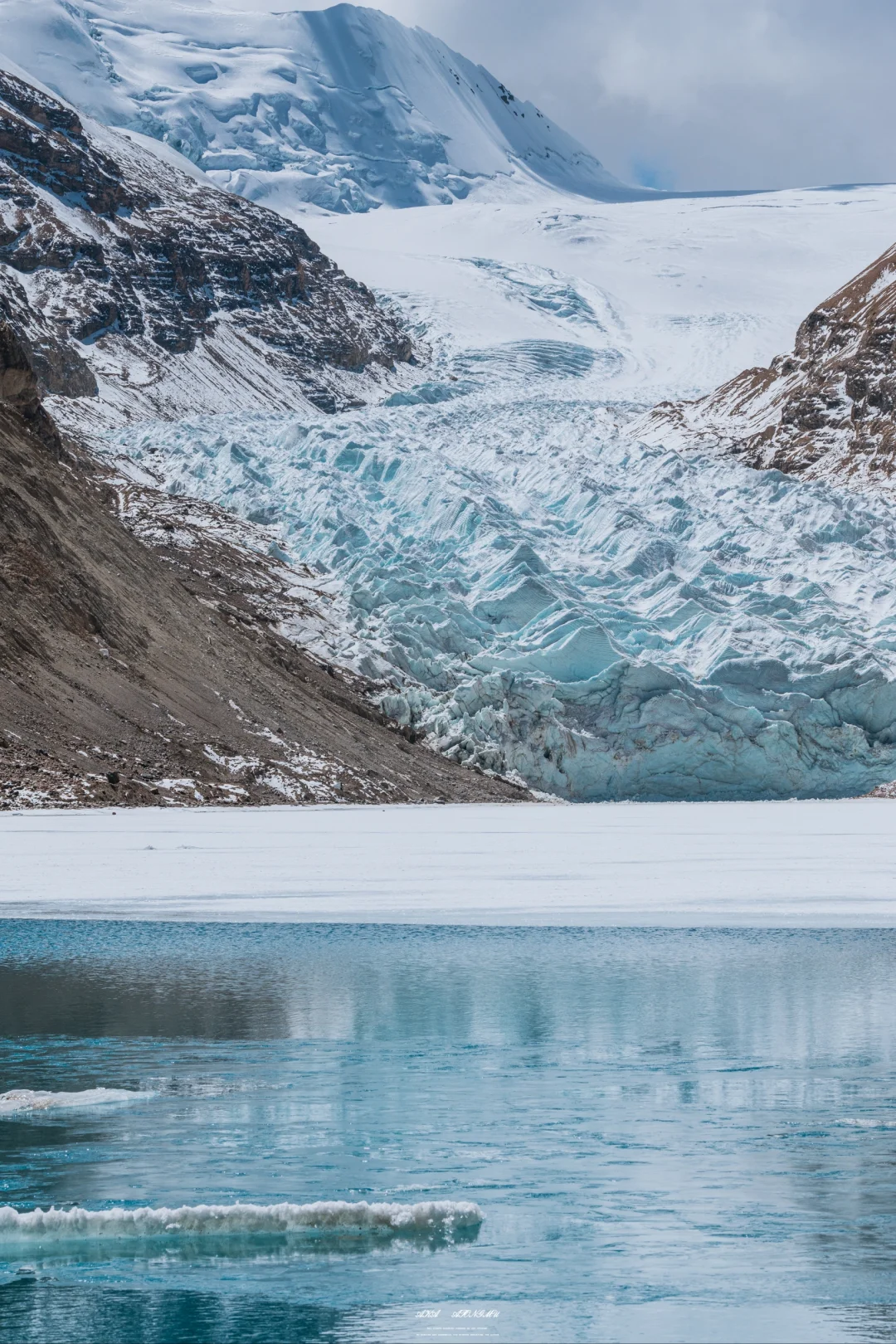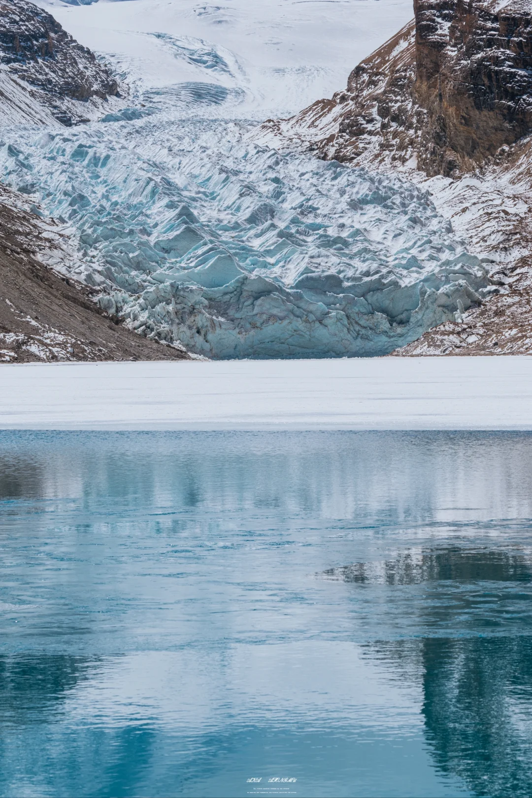 休息片刻继续前往冰湖的尽头,冬天来这是可以从湖面走过去的,我去的时候已经开始解冻,只能从一侧绕过去,这里还需要1个小时左右的路程,好在不需要爬坡,小心脚下就可以,行走时会听到冰面传来砰砰冰裂的声音,有时候会吓你一跳,等到直面这远古冰川的一刻,真的觉得一切语言都是词穷的,散发着幽蓝光芒的冰壁伫立在前方,仔细看上边还有着像树木年轮一样的纹理,层层叠叠,周而复始,记录着冰川的年龄,时间关系我只去了铜湖冰川,如果你去过旁边的58冰川和玉湖冰川,那就把照片放到评论区吧