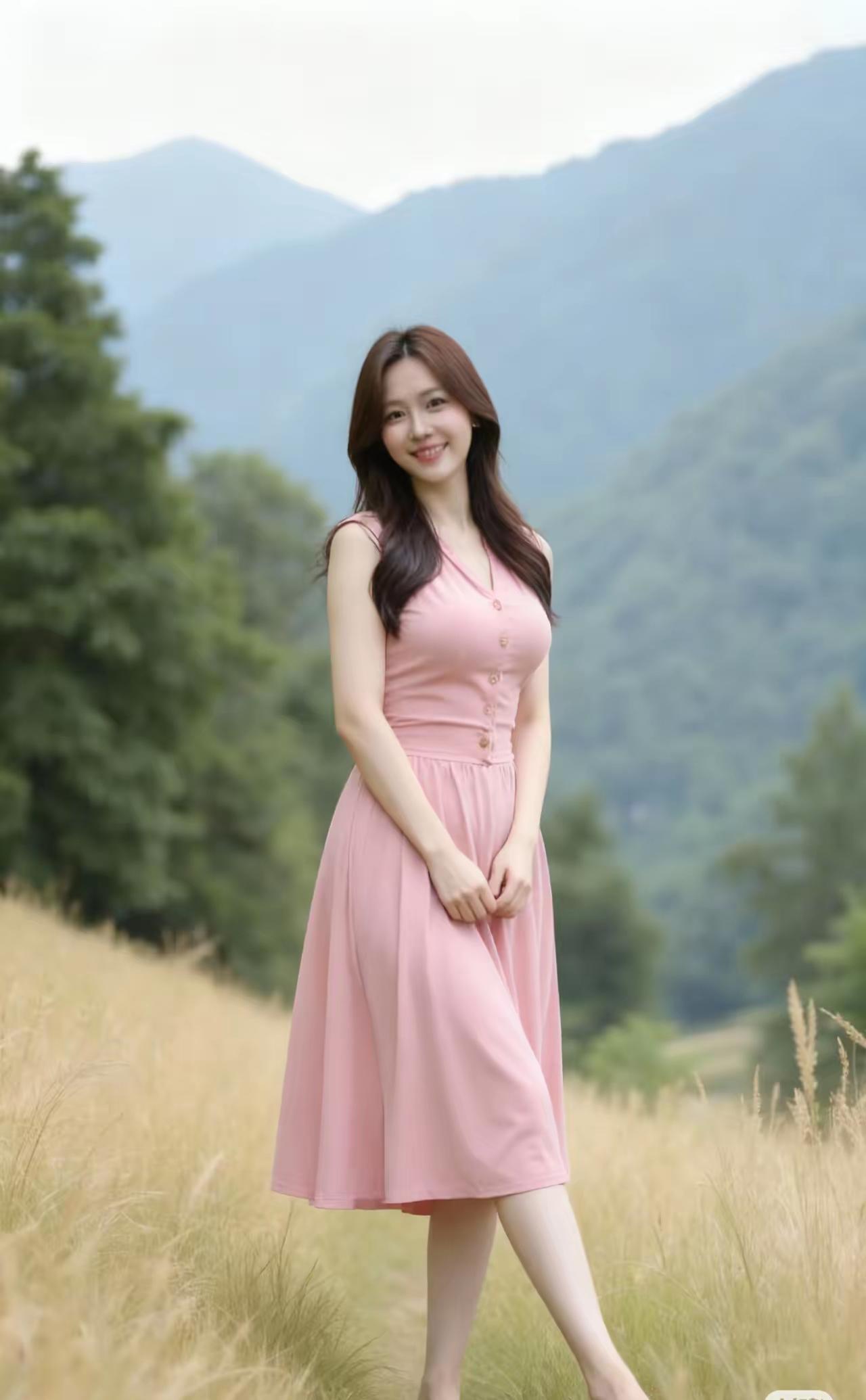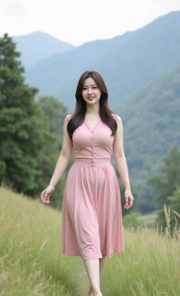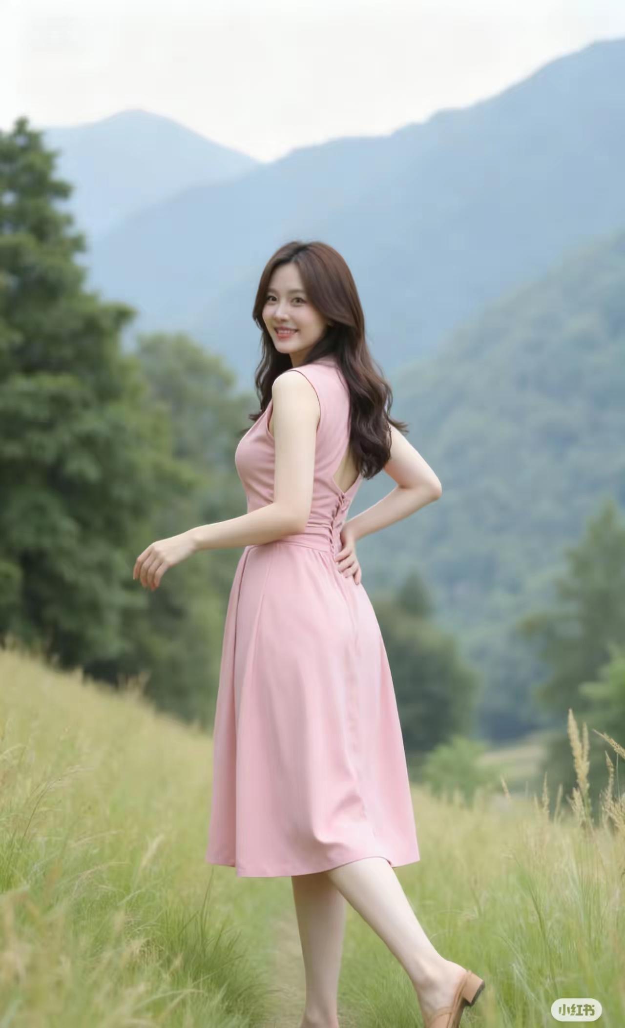 夏日粉色少女,微风轻拂,花海中漫步海边花海少女初秋少女感