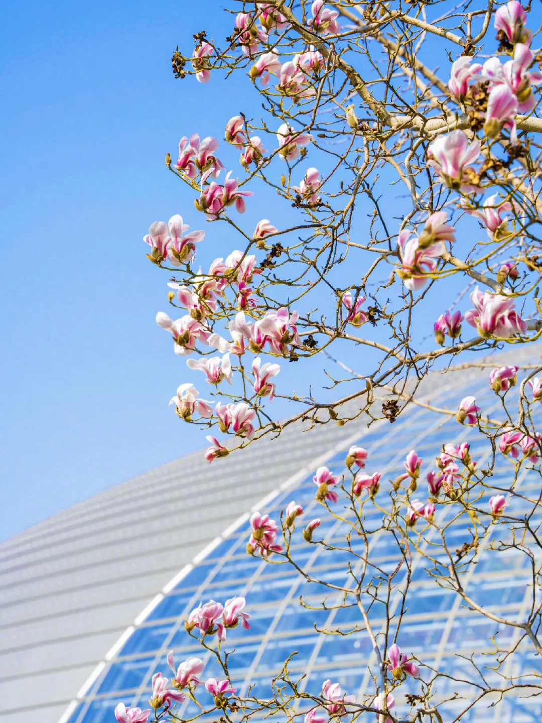 📷机位: 北广场东南角、南广场东西各一处,南广场的玉兰在松树后面!