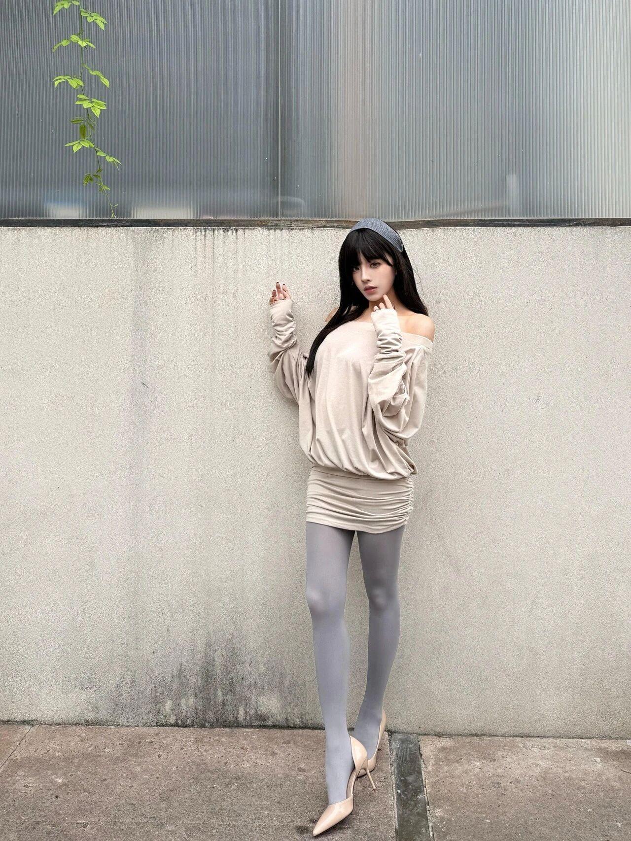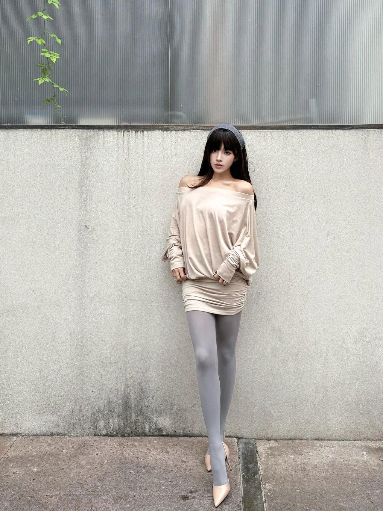 厚灰美学也很好看呀! 这件浅米色连衣裙,宽松的版型穿起来很舒服,带点随性的感觉,褶皱设计让简单中有点细节。厚灰丝袜和裸色高跟搭配,视觉上让腿显得更修长。整体是温柔休闲的风格,让心情轻松,有种低调的自信,好像任何事都变顺了。如果加条细项链点缀,可以增加精致感。