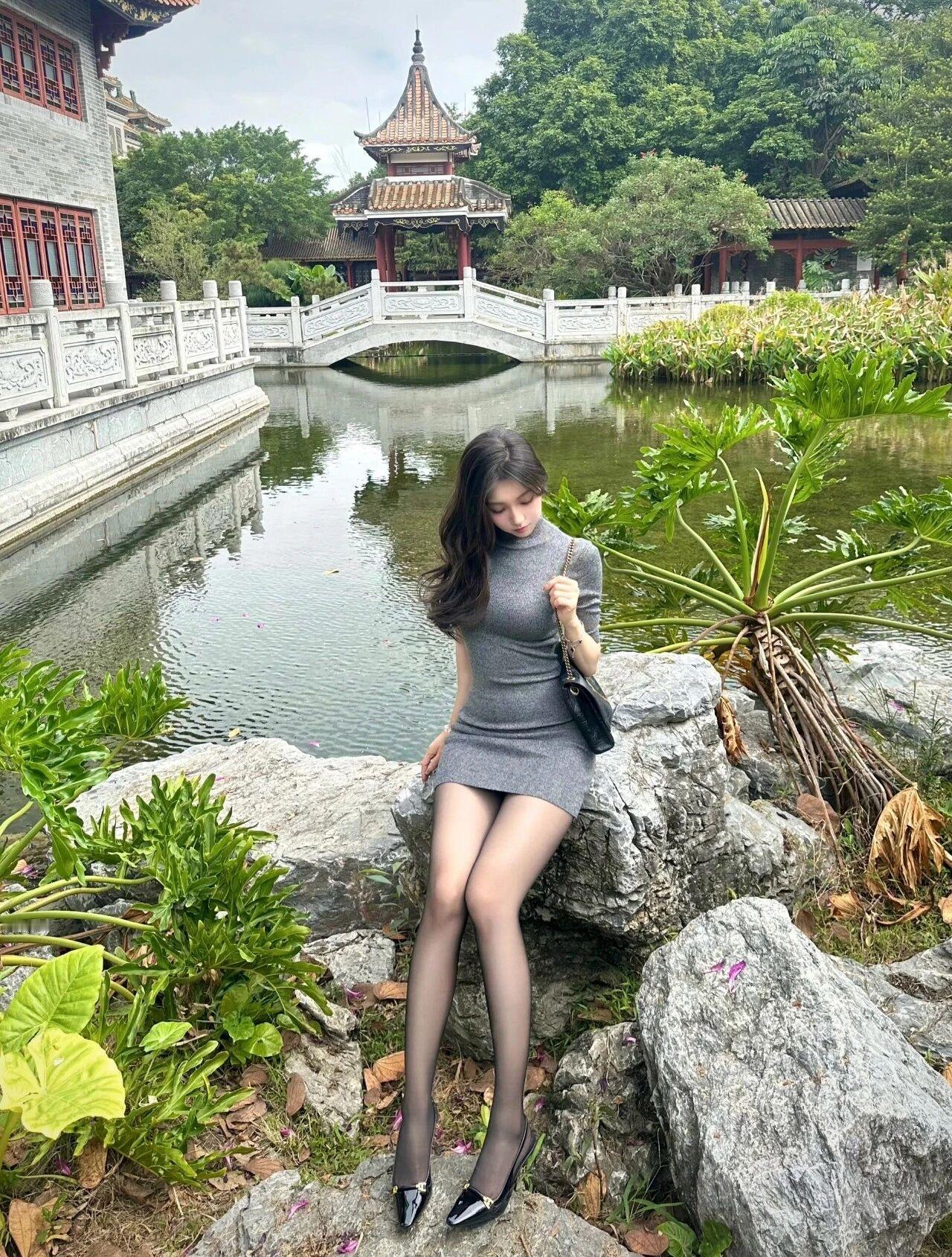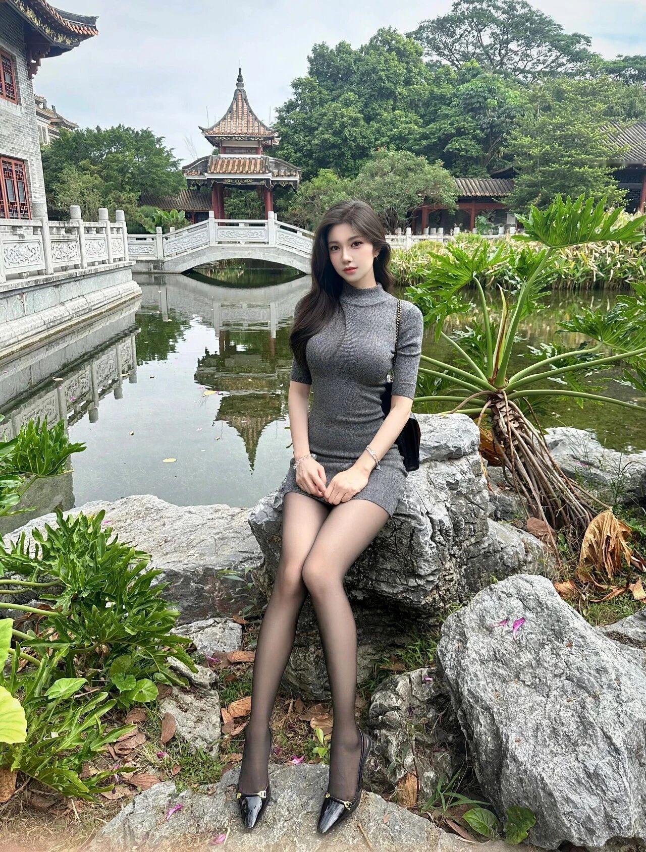 经典灰调针织连衣裙,搭配黑丝不争不抢的优雅 经典灰调针织连衣裙,搭配黑丝小高跟,