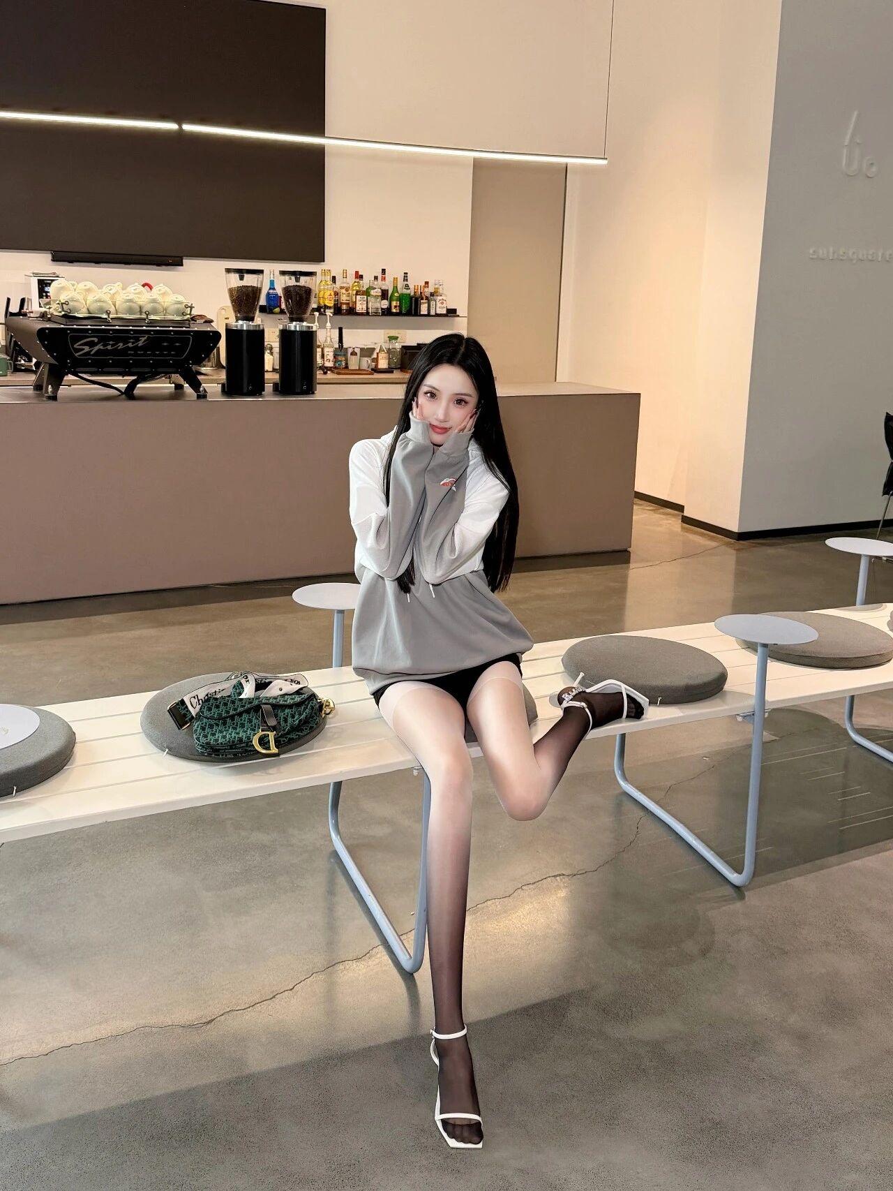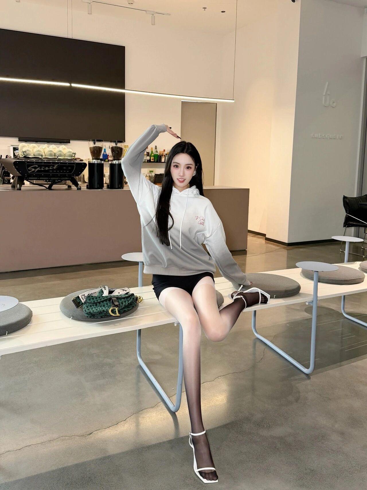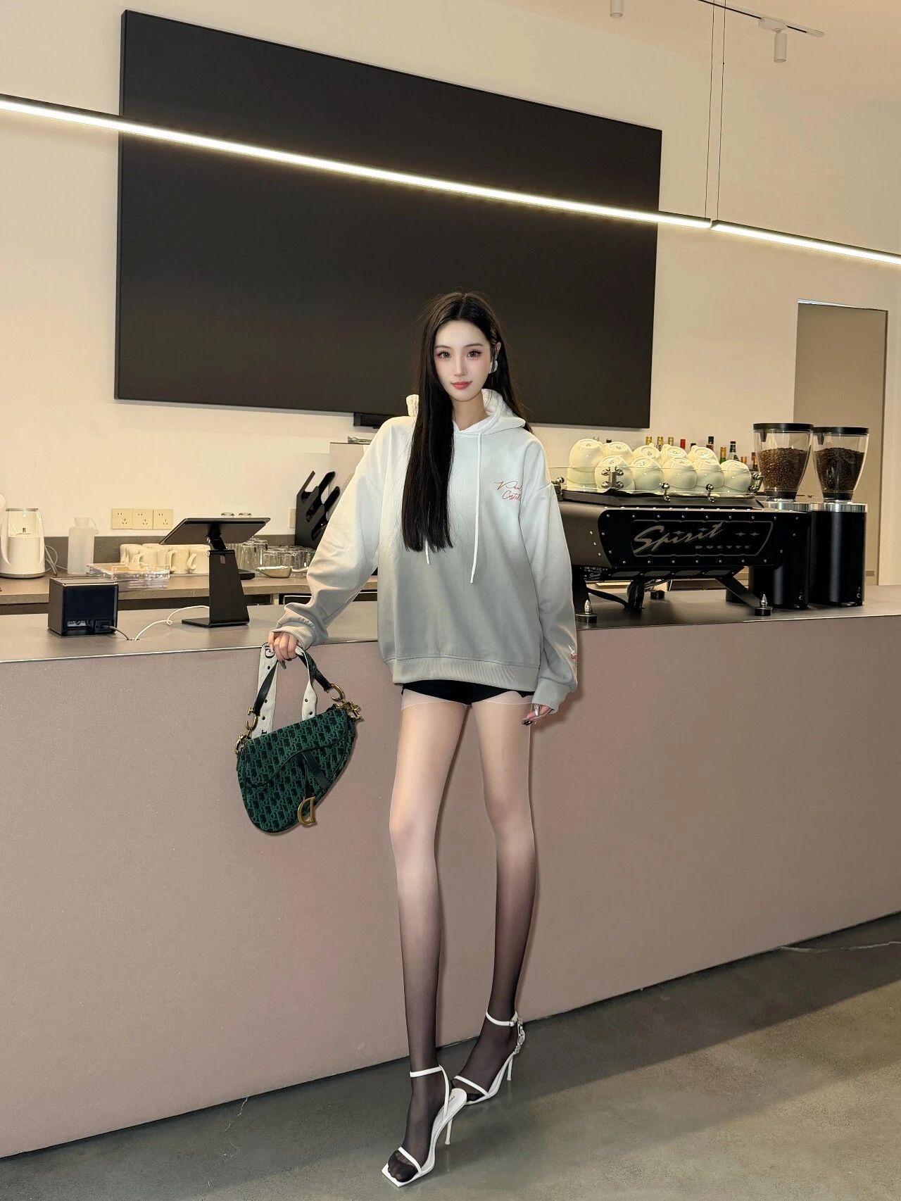 渐变卫衣+渐变丝袜搭配白色高跟鞋真的绝绝子! 渐变卫衣和渐变袜的组合确实很有巧妙。浅灰色卫衣的宽松版型带来轻松感,袜子的颜色从浅到深自然过渡,为整体添加了细腻的层次。这种风格休闲又精致,穿起来舒适又不失亮点女人怎样穿搭,更有高级感 。