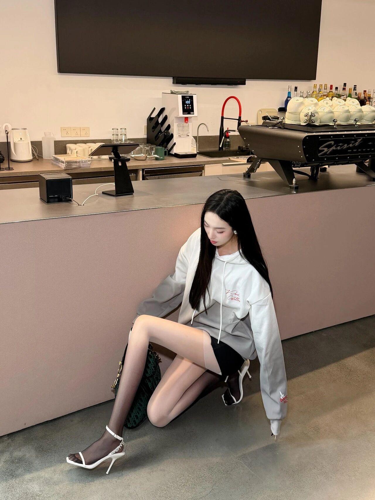 渐变卫衣+渐变丝袜搭配白色高跟鞋真的绝绝子! 渐变卫衣和渐变袜的组合确实很有巧妙