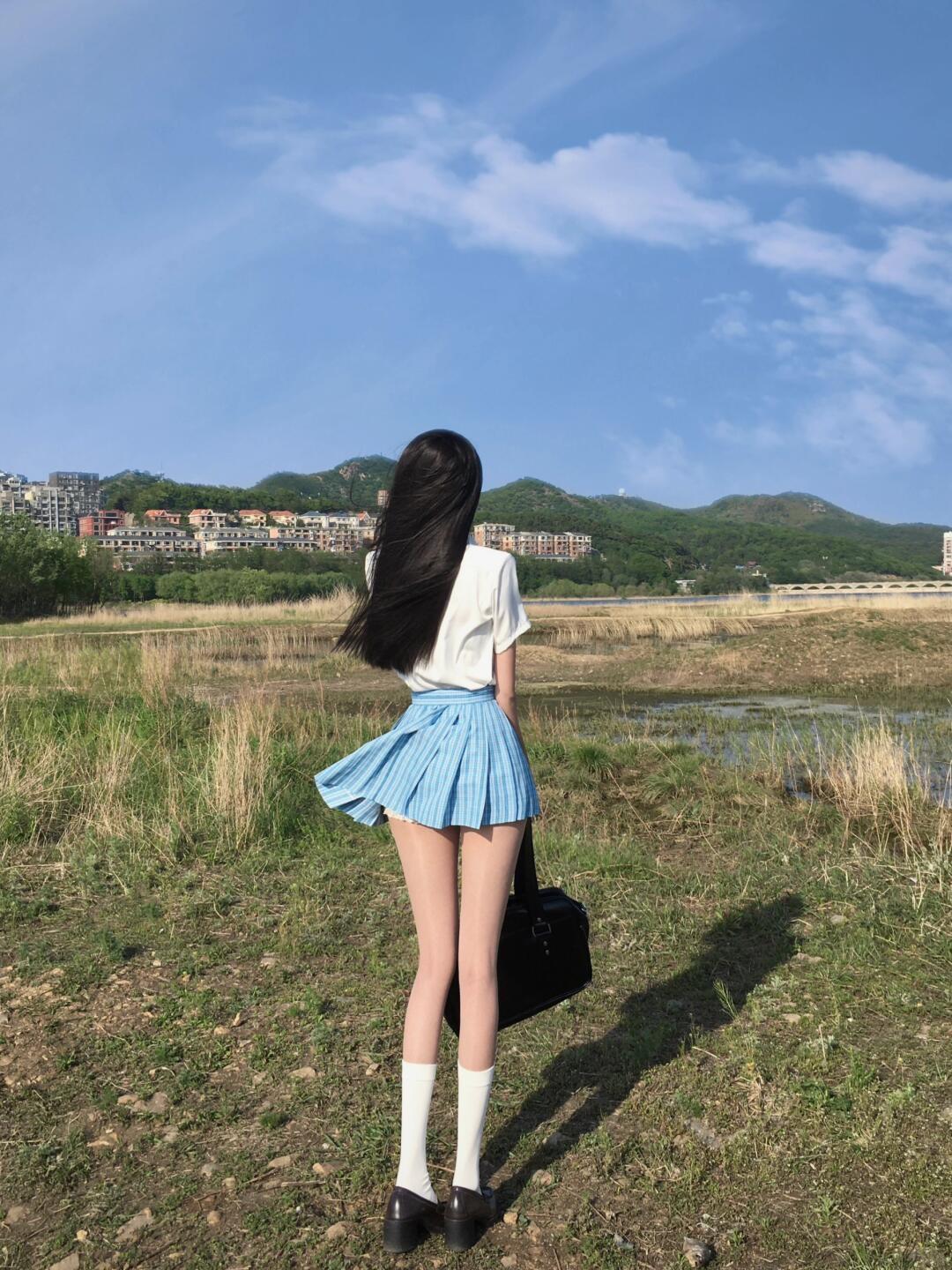 少女感爆满,完美身材 日常穿搭ootd 谁懂啊!蓝白配色一穿,直接魂穿青春剧女主✨ 草地+蓝天+短裙=夏天的快乐公式(已验证有效!)