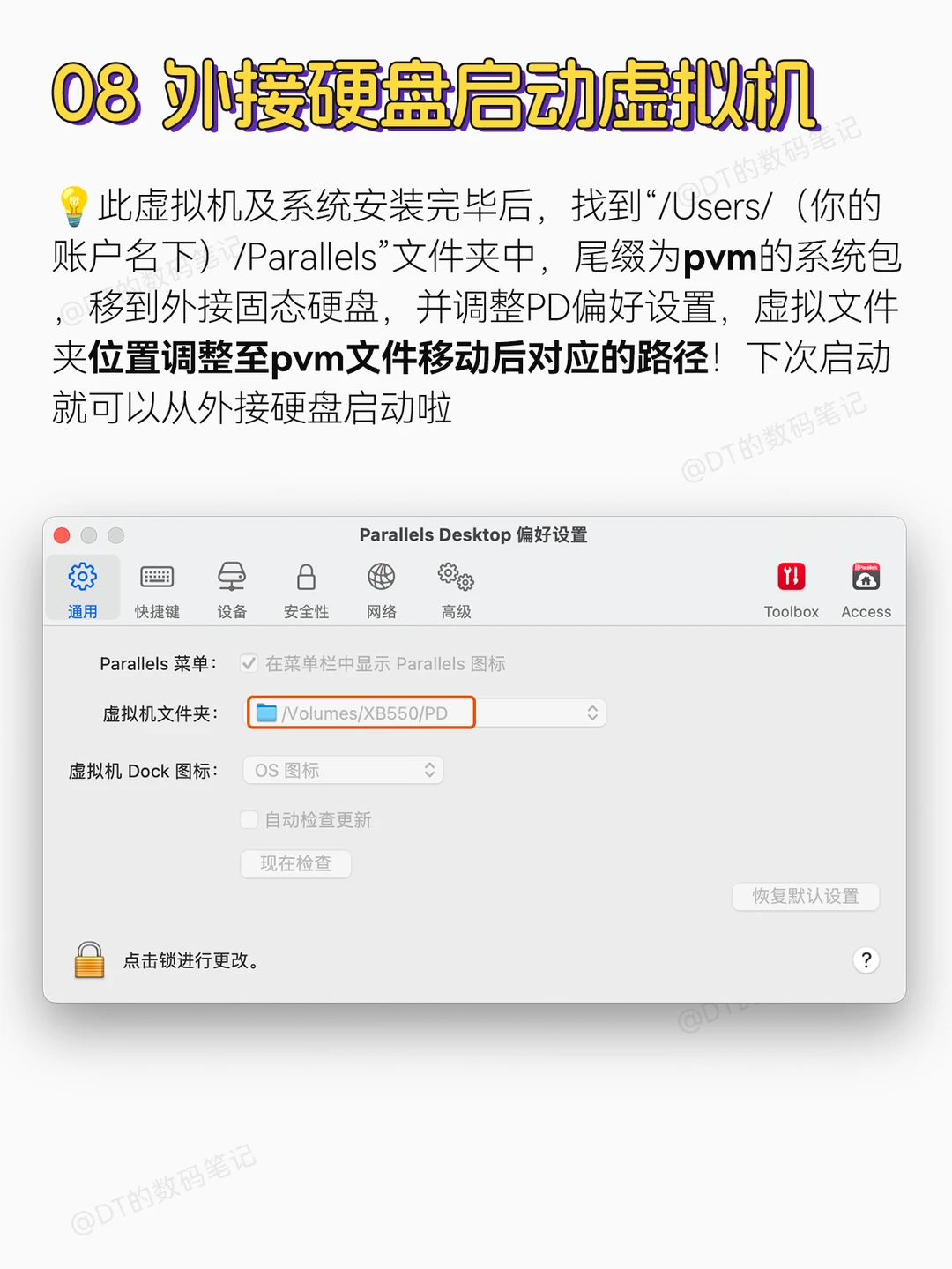 通过PD安装好Win系统后,尾缀pvm的系统包可以移到外接硬盘,并调整PD偏好设置中的虚拟机文件包路径!下次就可以从硬盘启动啦