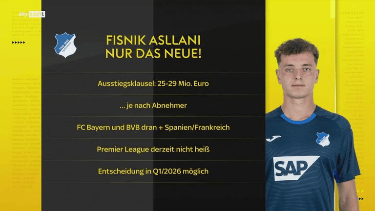 拜仁慕尼黑在争夺阿斯拉尼的竞争中面临着激烈的挑战。德国天空体育透露,多特蒙德以及来自西班牙和法国的俱乐部都对这位科索沃国脚感兴趣。