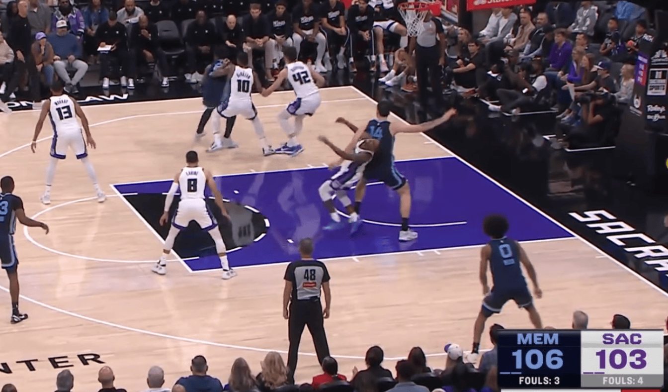 NBA官方表示,昨日比赛第四节,蒙克在与灰熊中锋扎克-伊迪在篮下卡位时出现假摔。