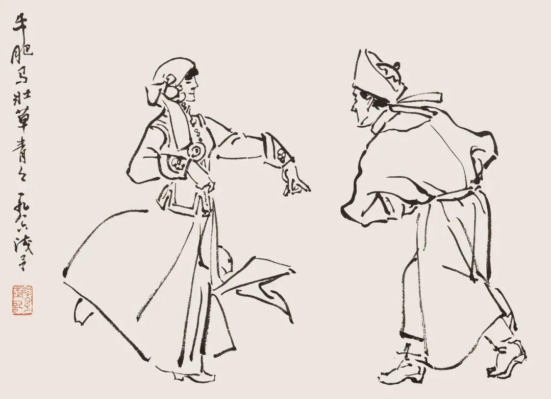 叶浅予笔下的《白描舞蹈人物》,简直把舞蹈的灵魂都画活了! 没有浓墨重彩,单靠简练而精准的线条,叶浅予就勾勒出舞者的千般姿态:有的旋转如飞,裙摆似绽放的花;有的踮脚而立,身姿像迎风的柳;抬手、弯腰、跳跃……每一根线条都跟着舞步“动”了起来,带着股子鲜活的劲儿,仿佛下一秒就能听到鼓点声响。 叶浅予太懂舞蹈了!他抓住了舞者最灵动的瞬间,用白描的“减法”,减去了所有多余的修饰,只留下最核心的动态与神韵。线条或刚劲、或柔美,粗细转折间,把舞蹈的节奏感、力量感全表现出来了,让人一看就忍不住跟着晃头,仿佛置身热闹的舞场。 这就是白描的魅力吧?用最简单的笔墨,画出最丰富的情感与动态。叶浅予笔下的舞蹈人物,是纸上的舞蹈,更是看得见的音乐,每一笔都在诉说着艺术的活力✨ 叶浅予 白描舞蹈人物 线条的艺术