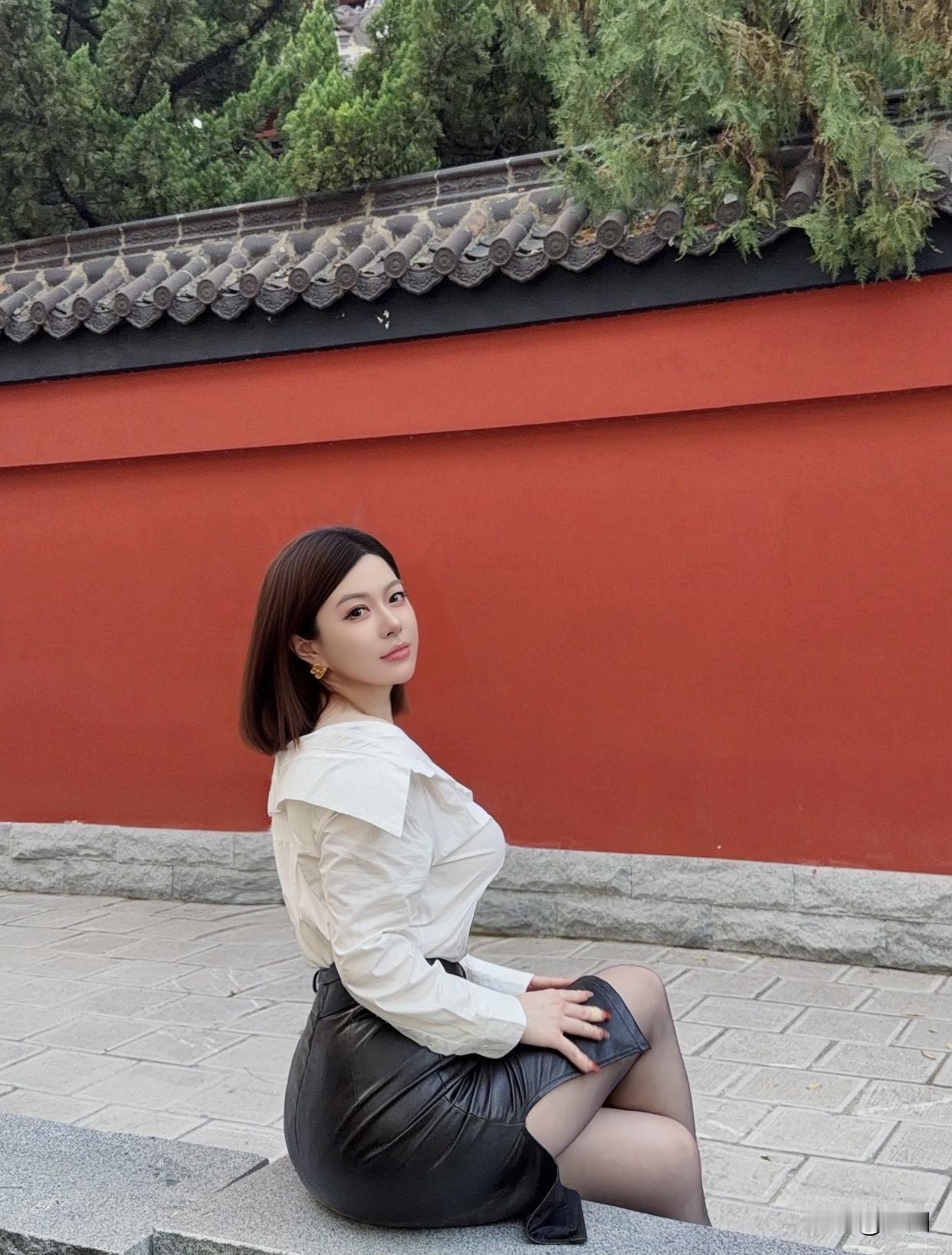 气质穿搭怎么穿才恰到好处?红墙映笑颜,古韵入画来。
