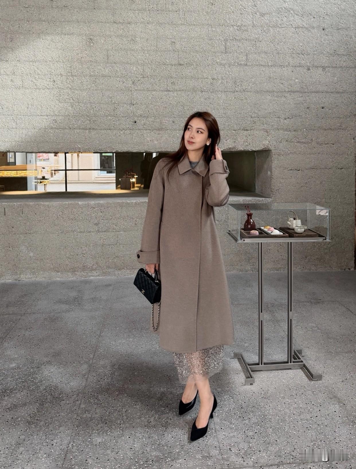 什么样的穿搭可以成为气质女神?翻领妮子大衣内搭网纱裙手拿黑色包包这搭配就很绝。秋冬把大衣和裙子配在一起,时髦感一下就有了。大衣线条挺直,给人稳重感;网纱裙柔软流动,能缓和厚重感,一硬一软视觉上不压人。 材质上选羊毛或羊绒的大衣最好,保暖又有质感。这种穿搭保暖又好看,上班、约会、年会都适合,还能拉长身形比例,让人看起来更修长利落。有了这搭配,普通女生也能大方优雅,成为气质女神。