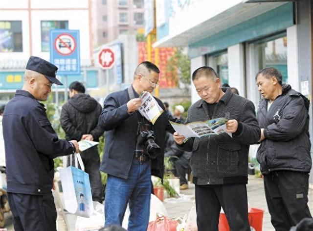 工作人员向群众发放宣传资料。吴雪瑞摄
