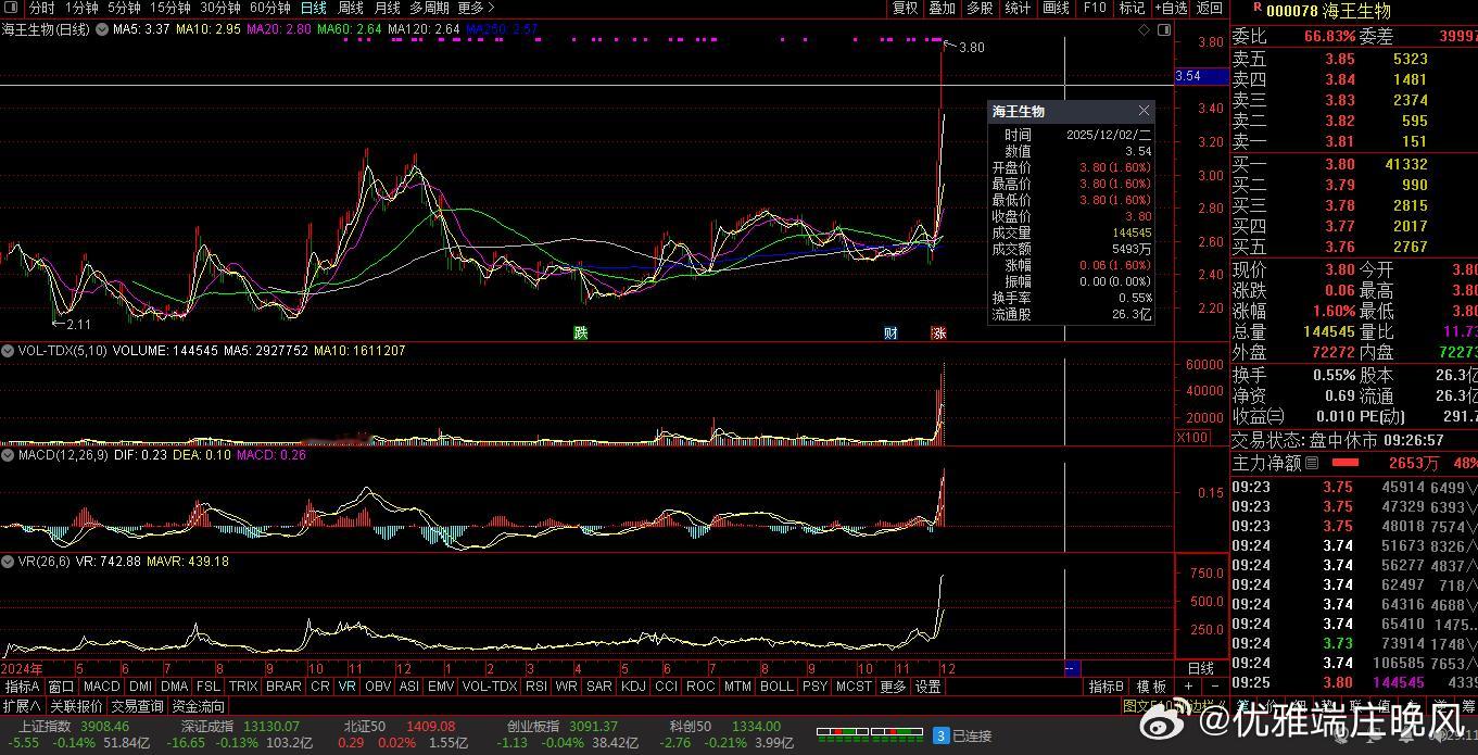 【财富晚茶】十大利好(12.02):追寻沪深北市十大利好信息的股票导语:作者系《网易号》优质财经领域创作者。曾经原创作者和知名网易号旅游领域创作者。大跨度行业等的写作,颇受网友喜爱。作品发表于 2025.12.02.10:08 优雅端庄晚风。编者的话:追寻市场:蛛丝马迹动态趋势。今天主题:【财富晚茶】十大利好(12.02):追寻沪深北市十大利好信息的股票。最新市场:新鲜出炉:2025.12.02.10:08十大利好股票参考。偏重其中:机构分析、龙虎榜数据、高成长性潜力等。综合筛选:涵盖医药流通、锂、集成电路、半导体等领域。兼顾短期:热点长期估值。每个股票:附简要利好原因。一、主力资金:市场表现前三佳股票海王生物(000078) 众生药业(002317) 景旺电子(603228)二、主力资金:十大利好信息的股票1、海王生物(000078)核心逻辑:公司治理优化(修订制度、强化关联交易管理)。早晨点评:叠加资产处置收益,短期利润改善显著。医药商业概念受政策利好。2、江特电机(002176)核心逻辑:掌控茜坑锂矿亚洲最大锂云母矿。早晨点评:新疆锂辉石规划储量0.8亿吨。云母提锂技术,碳酸锂综合成本约4万元/吨。锂价触底反弹预期增强(2025年碳酸锂价格预计7万元/吨)。风电配套电机市占率国内第一(60%),并已批量供应机器人头部企业。3、兆易创新(603986)核心逻辑:存储芯片龙头。早晨点评:半导体行业景气度回升,技术壁垒高。长期受益于国产替代趋势。市场环境:北向资金加仓半导体板块,政策支持科技创新。4、景旺电子(603228)核心逻辑:华为概念+无人驾驶+5G。早晨点评:产品覆盖RPCB/FPC/MPCB全类型,技术优势突出。行业趋势:汽车电子化推动PCB需求,公司为细分领域龙头。5、方正电机(002196)核心逻辑:电驱动领域世界级企业。早晨点评:研发人形机器人关节模组。该模组技术壁垒高,占人形机器人总成本约70%,成为宇树、华为、特斯拉等企业的潜在供应商。机器人关节模组电机的先发布局为其提供了较大的替代空间和增长潜力。6、联化科技(002250)核心逻辑:精细化工CDMO领域的龙头。早晨点评:服务诺华、阿斯利康等国际制药企业,临床III期项目达31个。英国基地2025年一季度因汇兑收益首次盈利。未来巩固农药中间体市场的领先地位。深度绑定先正达、拜耳等国际农化巨头。7、通富微电 (002156)核心逻辑:芯片封装测试的龙头。早晨点评:2.5D封装产能全国第一。攻克超大尺寸FCBGA的翘曲与散热难题。承接其80%以上的CPU/GPU封测订单。大基金三期1600亿元资金落地,车规级功率器件营收翻倍增长。国内销售增速达43.38%,反映国产替代加速。8、德赛西威核心逻辑:智能座舱系统全球领导者。早晨点评:为特斯拉、比亚迪供货,受益于自动驾驶普及9、*ST云网(002306 )核心逻辑:新能源收入60.1%,光伏收入增长1995.25%。早晨点评:已在多个业务领域系统化应用AI技术。与MNC客户向CMC延伸,涉足新分子药物多个细分业务。与中国能源签署合作意向书,盐城光伏项目?1GW组件?的招采事宜进行合作。10、众生药业(002317)核心逻辑:全球首款靶昂拉地韦片头部企业。早晨点评:全球首款靶向流感病毒RNA聚合酶PB2亚基的小分子抑制剂昂拉地韦片获批上市,抗病毒活性是奥司他韦的1000倍。风险提示1、部分科技板块亦或估值偏高需留意外部环境。2、美联储政策中美贸易摩擦内部经济不确定性。三、主力资金:其他利好信息的股票1、智能污水处理系统中持股份(603903)核心逻辑:环境技术领军企业。晚间点评:推出嵌入式污水处理厂智能控制站PLANTwin产品,提升技术竞争力。与AI技术公司合作开发智能污水处理系统。与三峡集团及地方环保部门协同治理。引入产业资本优化股权结构。已落地的肃宁县、任丘市PPP项目。参股公司华氢能(持股25%)。2、蛋种鸡商品代鸡苗晓鸣股份(300967)核心逻辑:蛋种鸡行业龙头。晚间点评:商品代鸡苗供给持续偏紧。通过“青年鸡+预混料”业务拓展产业链,形成生态共建新增长点。应用封闭式鸡舍与空气能热泵技术,降低能耗30%以上。优化蛋种鸡基因序列,提升雏鸡存活率至95%。利用戈壁滩地理优势实现废弃物资源化利用。四、 创作不易:优质网易财经作者投资投机迷茫之中:给予尽可能有帮助:资本市场风险自负。(优雅端庄晚风《网易号》财经领域创作者和原创作者 违者必究)