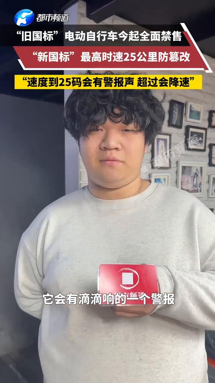 "旧国标"电动自行车今起全面禁售,"速度到25码会有警报声,超过会降速"。 都市频道。 12月1日河南郑州,某电动车门店店长:"新国标"车的速度是没办法突破25码,没有办法解除所有车型。如果要是接近25码,它会有滴滴响的警报,到25码它会自动限速到25码。