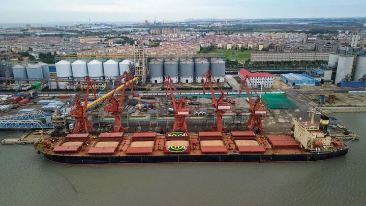 船只靠泊在龙口港(7月2日摄,无人机照片)。