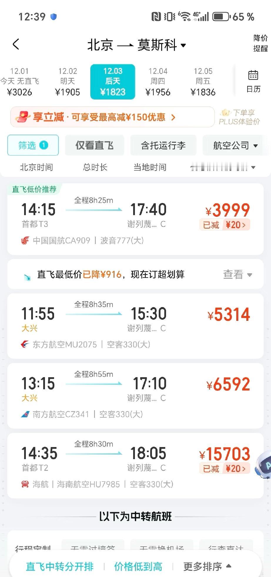 不太好的消息: 俄罗斯对中国免签后机票飞涨 凡事有利就有弊的具象化 从南京到北京买的没有卖的精 为了省399,殊不知大鹅盘算了三个月已经把这个价格加到了票价中。