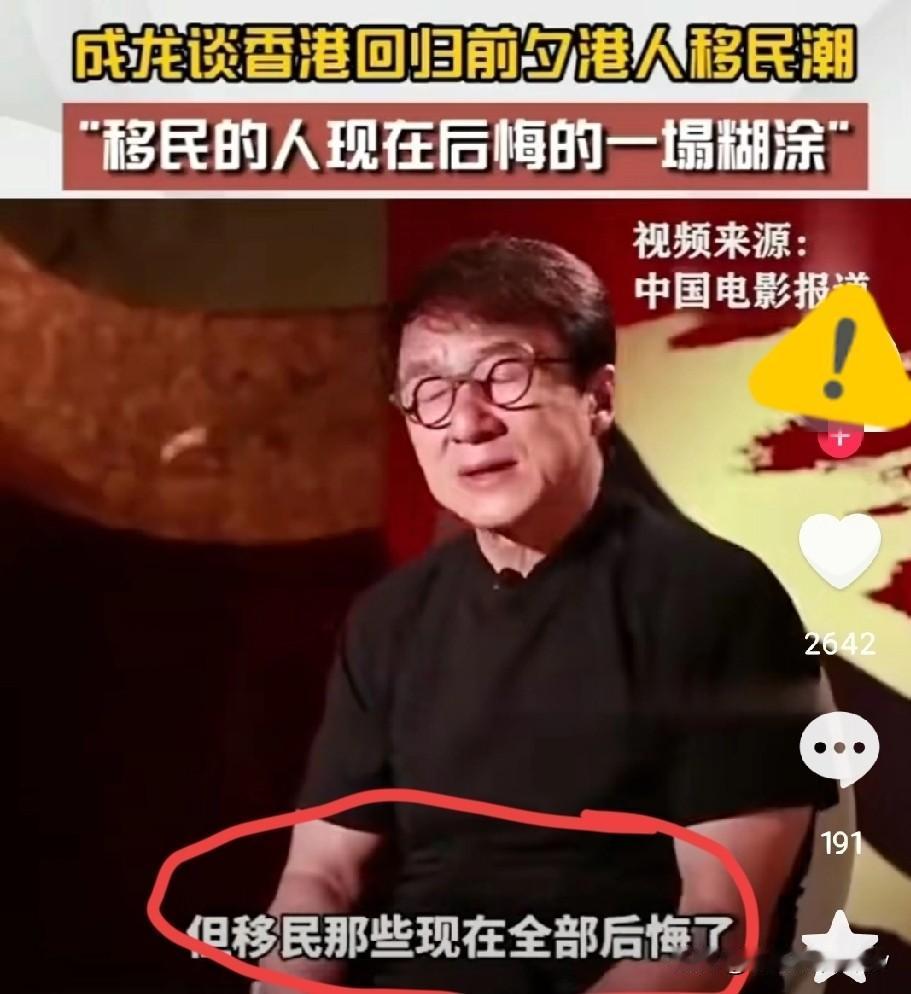 成龙死守香港的底气:那些移民国外的人,真的全后悔了? 成龙在公开场合的一番话最近又引发热议:“当年很多人移民走了,现在全后悔得一塌糊涂,我偏要死守香港,国外根本不是天堂。” 这话听着犀利,但背后藏着一段真实的历史,以及关于“选择”与“奋斗”的底层逻辑。 上世纪90年代,香港回归前夕的移民潮堪称时代印记。受当时的信息差和不确定性影响,超过30万港人扎堆移民,加拿大、澳洲、英国成了主要目的地。有人带着全部家当奔赴“理想国”,以为换个地方就能躺平,却没料到现实给了不少人一记耳光。 这些移民的境遇远比“后悔”二字复杂。有数据显示,移英的港人中,70%拥有大学文凭,却有60%只能从事零售、餐饮等低端服务岗,40%坦言财务状况比在香港时更糟。语言不通、学历不被认可只是开胃菜,文化隔阂带来的孤独感、身份认同的错位,才是更磨人的困境。曾有移英港人在遗书中只写了三个字“后悔了”,道尽了融入无门的绝望。 但要说“全部后悔”,也确实有些绝对。不可否认,部分移民为了子女教育、职业发展,在国外站稳了脚跟,甚至实现了阶层跨越。2024年的一份调查就显示,40%的移英港人明确表示不后悔,选择继续留在当地。关键差异不在于“国外好不好”,而在于“有没有做好奋斗的准备”——成龙的核心观点其实戳中了本质:“不努力工作,在哪儿都过不上好日子”。 成龙自己的坚守更有说服力。他从90年代就明确拒绝移民,哪怕家人有外籍身份,自己始终持有香港特区护照,认定“香港是中国的一部分,这里才是我的根”。而香港回归后的发展也印证了他的底气:如今的香港依然是国际金融中心,大湾区的融合发展更带来了新机遇,近年来甚至出现了移英港人的回流潮,不少人发现,当初逃离的地方,早已成了更具潜力的沃土。 其实移民从来不是“逃避现实”的捷径,而是一场需要全盘规划的冒险。有人在国外凭借拼劲闯出一片天,也有人在落差中怀念故土,核心不在于“选哪里”,而在于“能不能扛住压力、沉下心奋斗”。成龙的固执,本质上是对自身能力的自信,也是对故土发展的信任——他知道,真正的安全感,从来不是靠换国籍获得的,而是靠自己的双手和国家的稳定发展。 如今再看这场跨越三十年的选择博弈,答案早已清晰:没有绝对完美的栖息地,也没有不劳而获的天堂。无论是死守故土,还是远赴他乡,最终支撑一个人站稳脚跟的,永远是实力、韧性,以及对自己选择的负责。你身边有当年移民的人吗?他们现在过得怎么样?